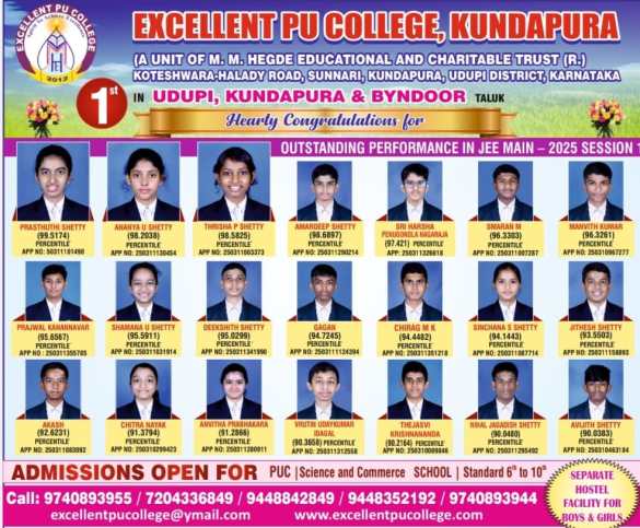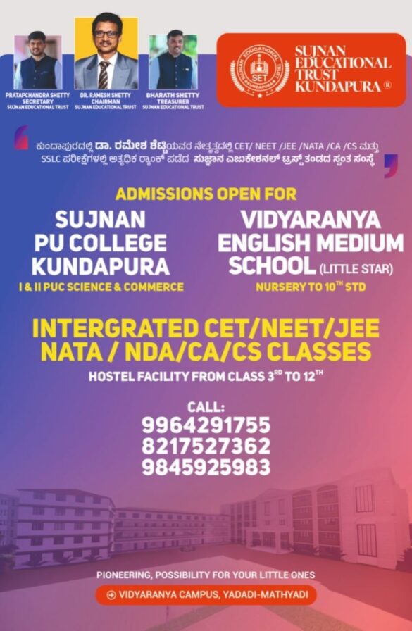 ಕುಂದಾಪುರ : ಸೇವಾ ಸಿಂಚನ ಪ್ರತಿಷ್ಠಾನವು ತನ್ನ ಮೂರನೇ ವರ್ಷದ ಯಶಸ್ವಿ ಸಂಸ್ಥಾಪನಾ ದಿನದ ಸವಿನೆನಪಿನಲ್ಲಿ 2025ರ ಶೈಕ್ಷಣಿಕ ದತ್ತಿನಿಧಿಯನ್ನು ಘೋಷಿಸಿದೆ. ಕುಂದಾಪುರ ತಾಲ್ಲೂಕು ವ್ಯಾಪ್ತಿಯ ಪದವಿ ಪೂರ್ವ, ಪದವಿ ಹಾಗೂ ಸ್ನಾತಕೋತ್ತರ ಪದವಿಯಲ್ಲಿ …