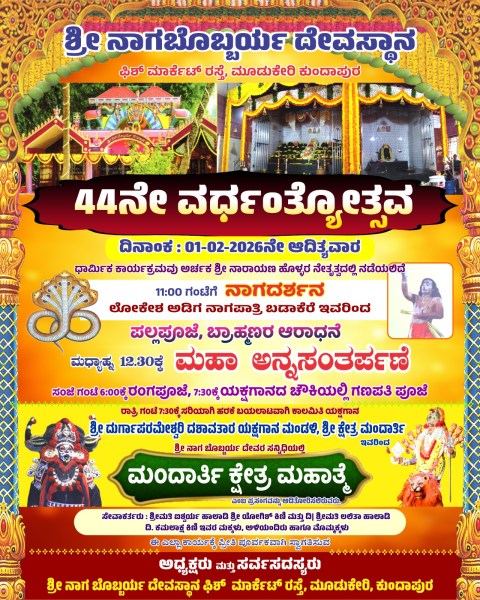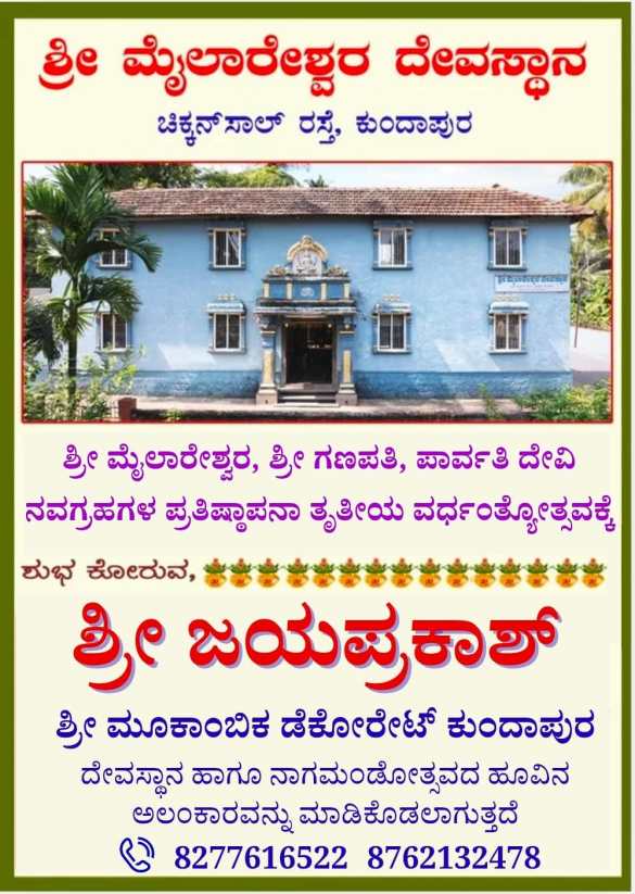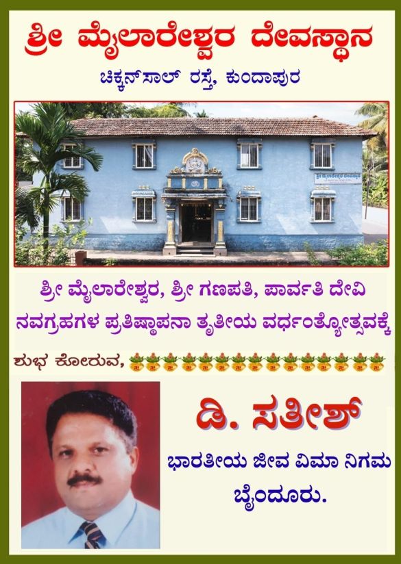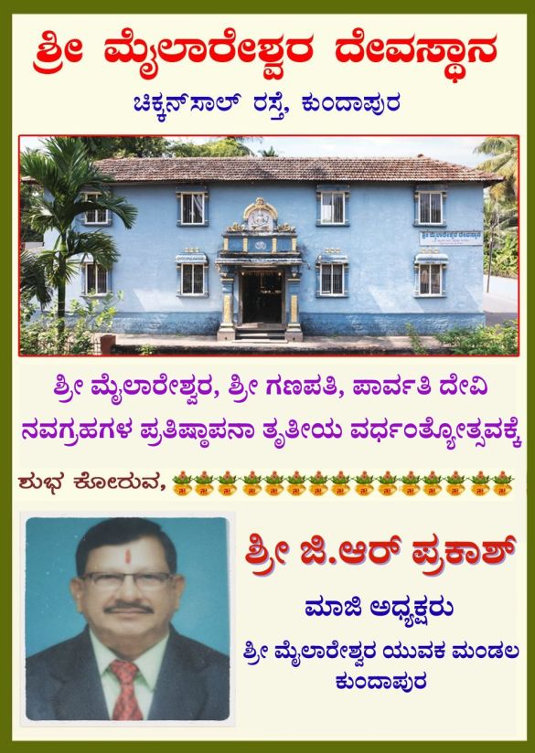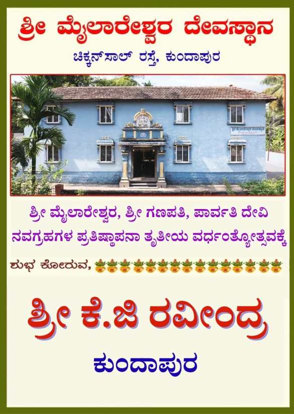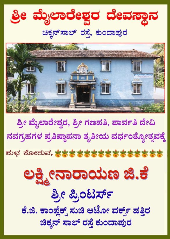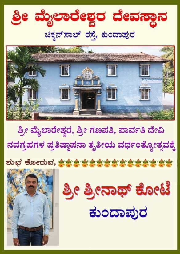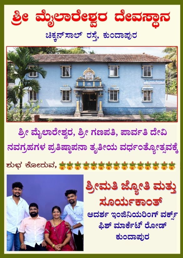 ಕುಂದಾಪುರ : ನಗರದ ಚಿಕ್ಕನಸಾಲು ರಸ್ತೆಯಲ್ಲಿರುವ ಶ್ರೀ ಮೈಲಾರೇಶ್ವರ ದೇವಸ್ಥಾನದಲ್ಲಿ ಅಷ್ಟಬಂಧ ಪ್ರತಿಷ್ಠೆಯ ತೃತೀಯ ವರ್ಧಂತ್ಯೋತ್ಸವವ ಇಂದು ಗುರುವಾರ ದೇವಸ್ಥಾನದ ವಠಾರದಲ್ಲಿ ಜರುಗಲಿದೆ. ಶ್ರೀ ಮೈಲಾರೇಶ್ವರ ಶ್ರೀ ಗಣಪತಿ ಮತ್ತು ಪಾರ್ವತಿ ದೇವಿ ಹಾಗೂ …
