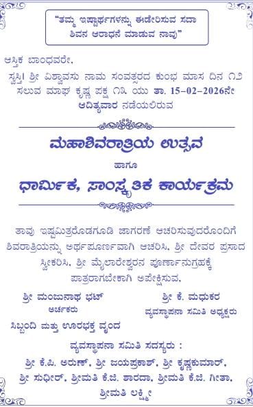 ಕುಂದಾಪುರ : ನಗರದಲ್ಲಿರುವ ಶ್ರೀ ಕುಂದೇಶ್ವರ ದೇವಸ್ಥಾನದಲ್ಲಿ ಮಹಾಶಿವರಾತ್ರಿಯ ಪ್ರಯುಕ್ತ ಇಂದು ಬೆಳ್ಳಗೆ 9.00ರಿಂದ ಶತರುದ್ರಾಭೀಷೇಕ,ಮಹಾಪೂಜೆ ಹಾಗೂ ಪ್ರಸಾದ ವಿತರಣೆ ನಡೆಯಲಿದ್ದು. ಬೆಳಿಗ್ಗೆ ಸೂರ್ಯೋದಯದಿಂದ ಸೂರ್ಯಾಸ್ತಮಾನದ ತನಕ ಕುಂದಾಪುರ ತಾಲೂಕು ಭಜನಾ ಮಂಡಳಿಗಳ ಒಕ್ಕೂಟ …