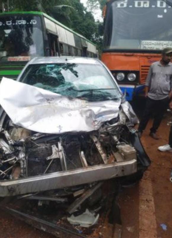 ಪುತ್ತೂರು: ಕೆಎಸ್ ಆರ್ ಟಿಸಿ ಬಸ್ ಹಾಗೂ ಕಾರಿನ ಮಧ್ಯೆ ಅಪಘಾತ ಸಂಭವಿಸಿ ಕಾರು ಜಖಂಗೊಂಡಿರುವ ಘಟನೆ ಮಾಣಿ-ಮೈಸೂರು ರಾಷ್ಟ್ರೀಯ ಹೆದ್ದಾರಿಯಲ್ಲಿನ ಆರ್ಯಾಪು ಗ್ರಾಮದ ಸಂಟ್ಯಾರ್ ಎಂಬಲ್ಲಿ ನಡೆದಿದೆ.ಪುತ್ತೂರಿನಿಂದ ಬೆಳ್ಳಾರೆ ಕಡೆಗೆ ತೆರಳುತ್ತಿದ್ದ ಬಸ್ಸಿಗೆ, ಸುಳ್ಯ ಕಡೆಯಿಂದದ ಪುತ್ತೂರಿನತ್ತ ಬರುತ್ತಿದ್ದ ಕಾರು ಢಿಕ್ಕಿ ಹೊಡೆದಿದೆ. ಅಪಘಾತದ ರಭಸಕ್ಕೆ ಕಾರು ತಿರುಗಿ ವಿರುದ್ಧ ದಿಕ್ಕಿನಲ್ಲಿ ನಿಂತಿದ್ದು, ಸಂಪೂರ್ಣ ನಜ್ಜುಗುಜ್ಜಾಗಿದೆ. ಆದರೆ ಕಾರಿನಲ್ಲಿ ಇದ್ದ ಚಾಲಕ ಸೇರಿ ಇಬ್ಬರು ಪ್ರಯಾಣಿಕರು ಸಣ್ಣಪುಟ್ಟ ಗಾಯಗಳೊಂದಿಗೆ ಪವಾಡಸದೃಶವಾಗಿ ಪಾರಾಗಿದ್ದಾರೆ ಎಂದು ತಿಳಿದುಬಂದಿದೆ.