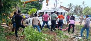 ಸುಮಾರು ಹತ್ತು ಜನ ಪ್ರಯಾಣಿಕರಿದ್ದ ಟಿಟಿ ವಾಹನ ಚಾಲಕನ ನಿಯಂತ್ರಣ ತಪ್ಪಿ ಡಿವೈಡರ್ ಗೆ ಹೊಡೆದು ರಾಷ್ಟ್ರೀಯ ಹೆದ್ದಾರಿ ಪಕ್ಕದ ವಿದ್ಯುತ್ ಕಂಬಕ್ಕೆ ಢಿಕ್ಕಿ ಹೊಡೆದು ಇಂದಿರಾ ಲ್ಯಾಬ್ ಸಮೀಪದ ಕಂದಕಕ್ಕೆ ಉರುಳಿದೆ.