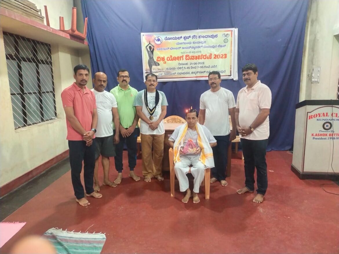 ಕುಂದಾಪುರ: ರೋಯಲ್ ಕ್ಲಬ್ ಕುಂದಾಪುರ, ಸೀನಿಯರ್ ಚೇಂಬರ್ ಇಂಟರ್ನ್ಯಾಷನಲ್ ಕುಂದಾಪುರ ಹಾಗೂ ಯೋಗಬಂಧು ಕುಂದಾಪುರ ಇವರ ಜಂಟಿ ಸಹಯೋಗದಲ್ಲಿ ಕುಂದಾಪುರ ಚಿಕ್ಕನ್ಸಾಲ್ ರಸ್ತೆಯಲ್ಲಿರುವ ರೋಯಲ್ ಕ್ಲಬ್ ಸಭಾಂಗಣದಲ್ಲಿ “ವಿಶ್ವ ಯೋಗ ದಿನಾಚರಣೆ”ಯನ್ನು ಆಚರಿಸಲಾಯಿತು. ಈ ಸಂದರ್ಭದಲ್ಲಿ ಯೋಗ ಗುರು ಯೋಗಬಂಧು ಶ್ರೀ ಸಂಜೀವಣ್ಣನವರನ್ನು ಗೌರವಿಸಿ ಸನ್ಮಾನಿಸಲಾಯಿತು. ಕಾರ್ಯಕ್ರಮದಲ್ಲಿ ರೋಯಲ್ ಕ್ಲಬ್ ಅಧ್ಯಕ್ಷ ಪ್ರಶಾಂತ, ಕಾರ್ಯದರ್ಶಿ ಪ್ರಕಾಶ್ ಕೆ., ಸೀನಿಯರ್ ಛೇಂಬರ್ ಇಂಟರ್ನ್ಯಾಶನಲ್ ಕುಂದಾಪುರ ಲೆಜನ್ ಇದರ ಅಧ್ಯಕ್ಷ ಶಿವಾನಂದ ಎಂ.ಪಿ., ಯೋಗಬಂಧು ಭಾಸ್ಕರ ಗಾಣಿಗ, ರೋಯಲ್ ಕ್ಲಬ್ನ ಪದಾಧಿಕಾರಿ ಗಣೇಶ್ ಬೆಟ್ಟಿನ್, ಸಾರ್ವಜನಿಕರು ಹಾಗೂ ಮಕ್ಕಳು ಉಪಸ್ಥಿತರಿದ್ದರು.