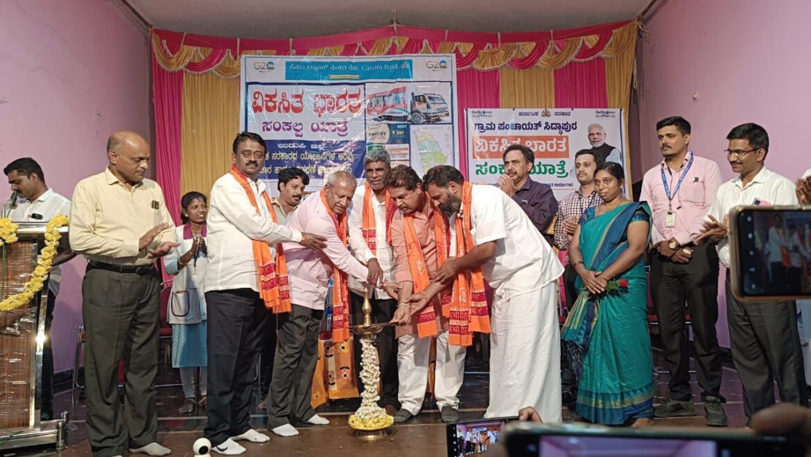 ಸಿದ್ದಾಪುರ : ಬೈಂದೂರು ಕ್ಷೇತ್ರದಲ್ಲಿ ಸಾಗುತ್ತಿರುವ ವಿಕಸಿತ ಭಾರತ ಸಂಕಲ್ಪ ಯಾತ್ರೆಯ ವಾಹನವನ್ನು ಇಂದು 06.01.2024 ರಂದು ಶಾಸಕ ಗುರುರಾಜ್ ಗಂಟಿಹೊಳೆ ಅವರು ಸಿದ್ದಾಪುರದಲ್ಲಿ ಬರಮಾಡಿಕೊಂಡರು.