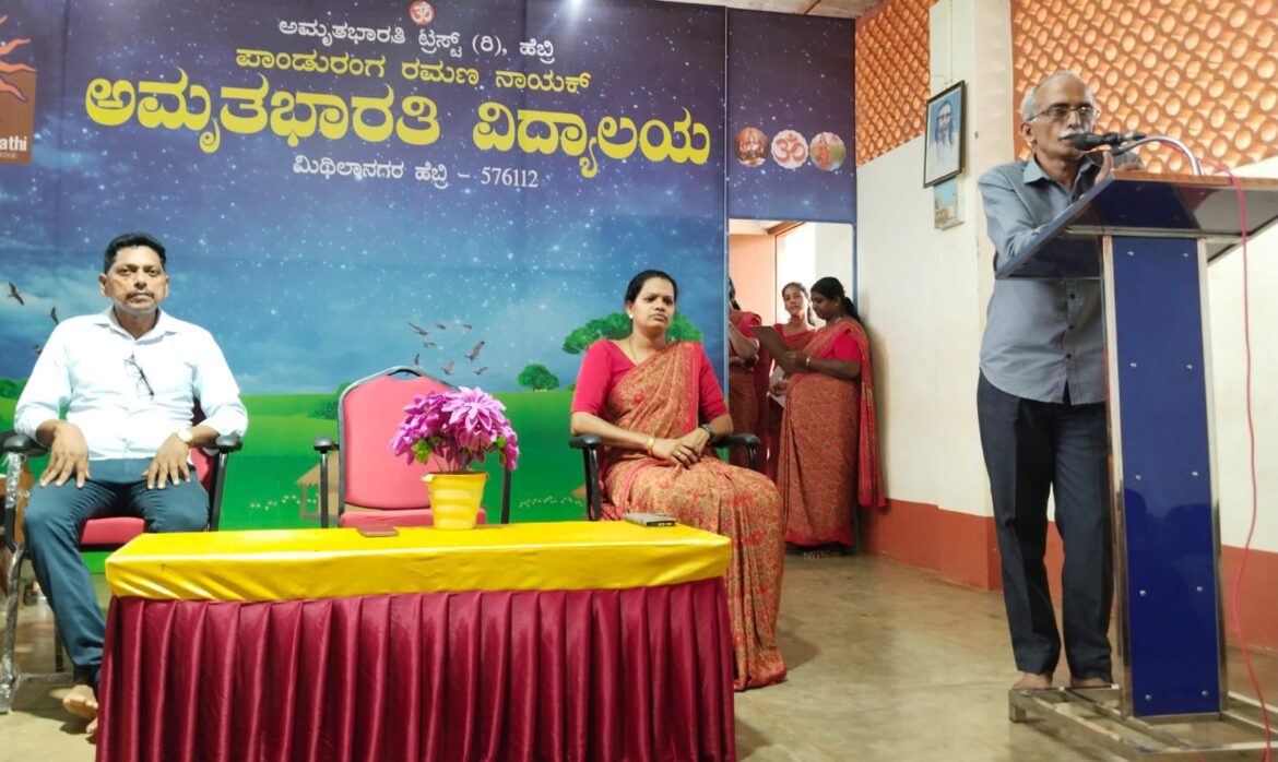 ಸೈಕಲ್ ಸವಾರಿ ಈಜು ಹೀಗೆ ಹಲವಾರು ರೀತಿಯ ಚಟುವಟಿಕೆಗಳನ್ನು ವಿದ್ಯಾರ್ಥಿಗಳು ತಮ್ಮಲ್ಲಿ ಕರಗತ ಮಾಡಿಕೊಂಡಿರಬೇಕು ಎಂದು ತಮ್ಮ ಅಧ್ಯಕ್ಷ ಭಾಷಣದಲ್ಲಿ ಮಾತನಾಡಿದರು ವೇದಿಕೆಯಲ್ಲಿ ಅಮೃತ ಭಾರತಿ ಪ್ರಾಥಮಿಕ ವಿಭಾಗದ ಮುಖ್ಯೋಪಾಧ್ಯಾಯಿನಿ ಶ್ರೀಮತಿ ಶಕುಂತಲಾ . ಅಮೃತ ಭಾರತಿ ಹೈಸ್ಕೂಲ್ ವಿಭಾಗದ ಉಪಮುಖ್ಯ ಉಪಾಧ್ಯಾಯರು ಶ್ರೀ ಮಹೇಶ್ ಹೈಕಾಡಿ ಉಪಸ್ಥಿತರಿದ್ದರು
