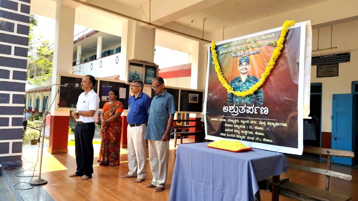 ಕೋಟ : ಜಮ್ಮು ಕಾಶ್ಮೀರ ಇಲ್ಲಿ ಲ್ಯಾನ್ಸ್ ಹವಾಲ್ದಾರರಾಗಿ ಕರ್ತವ್ಯ ನಿರ್ವಹಿಸುತ್ತಿರುವ ಸಂದರ್ಭದಲ್ಲಿ ವಾಹನ ರಸ್ತೆ ಅಪಘಾತಕ್ಕೆ ಒಳಗಾಗಿ ಮೃತರಾದ ಕೋಟ,ವಿವೇಕ ವಿದ್ಯಾ ಸಂಸ್ಥೆಯ ಹಿಂದಿನ ಹೆಮ್ಮೆಯ ವಿದ್ಯಾರ್ಥಿ ಯೋಧ ಅನುಪ್ ಪೂಜಾರಿ ಬಿಜಾಡಿ ಅವರ ಪಾರ್ಥಿವ ಶರೀರ ಅವರ ಸ್ವಗ್ರಾಮಕ್ಕೆ ತೆರುಳುವ ಸಂದರ್ಭದಲ್ಲಿ ವಿವೇಕ ವಿದ್ಯಾ ಸಂಸ್ಥೆಯ ಮುಂಭಾಗದಲ್ಲಿ ಅವರ ಪಾರ್ಥಿವ ಶರೀರಕ್ಕೆ ನಮನವನ್ನು ಸಲ್ಲಿಸಲಾಯಿತು.