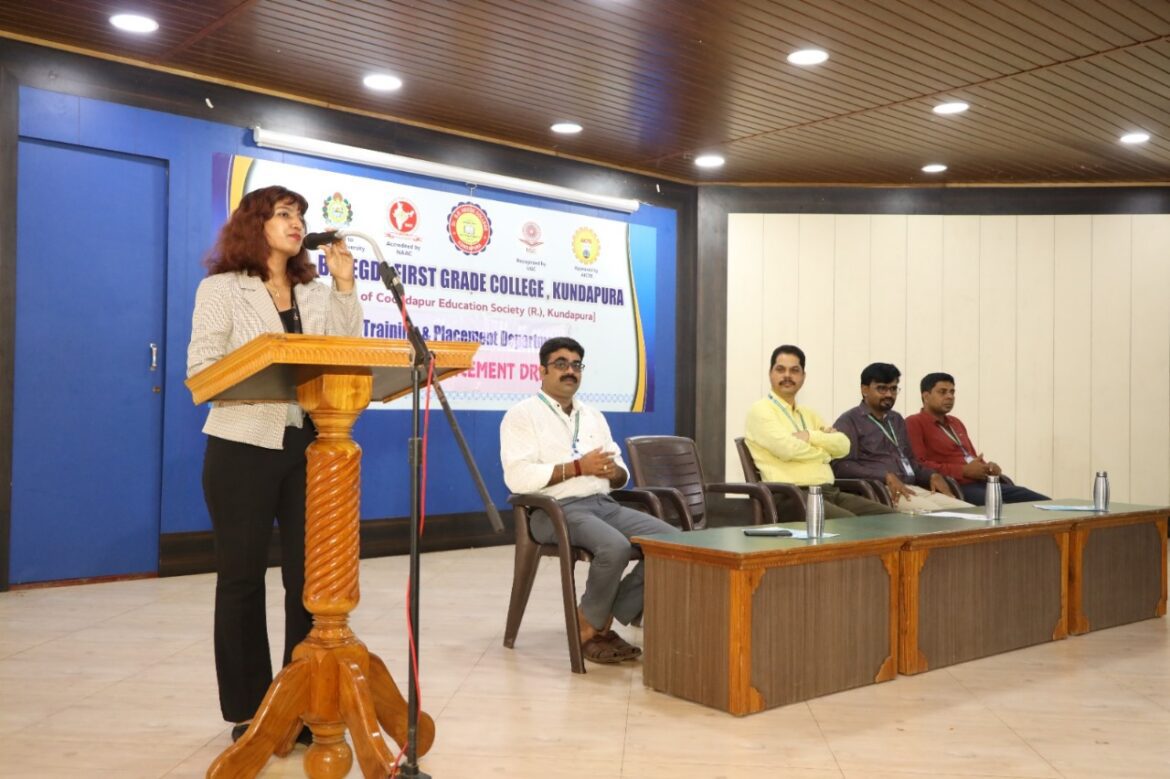 ಕುಂದಾಪುರ : ಡಾ| ಬಿ.ಬಿ. ಹೆಗ್ಡೆ ಪ್ರಥಮ ದರ್ಜೆ ಕಾಲೇಜಿನ ವೃತ್ತಿ ಮಾರ್ಗದರ್ಶನ ಘಟಕ ಕ್ಯೂ ಸ್ಪೆಂಡರ್ ಸಂಸ್ಥೆಯ ಸಹಯೋಗದೊಂದಿಗೆ ಉದ್ಯೋಗ ಶಿಬಿರವನ್ನು ಹಮ್ಮಿಕೊಳ್ಳಲಾಯಿತು.ಮುಖ್ಯ ಅತಿಥಿಯಾಗಿ ಆಗಮಿಸಿದ ಕ್ಯೂ ಸ್ಪೆಂಡರ್ ಸಂಸ್ಥೆಯ ಹೆಚ್.ಆರ್. ಲೀಡ್ ಆಗಿರುವ ಚಂದನಾರವರು ಉದ್ಯೋಗ ಶಿಬಿರದ ಬಗ್ಗೆ ಮಾಹಿತಿ ನೀಡಿದರು.