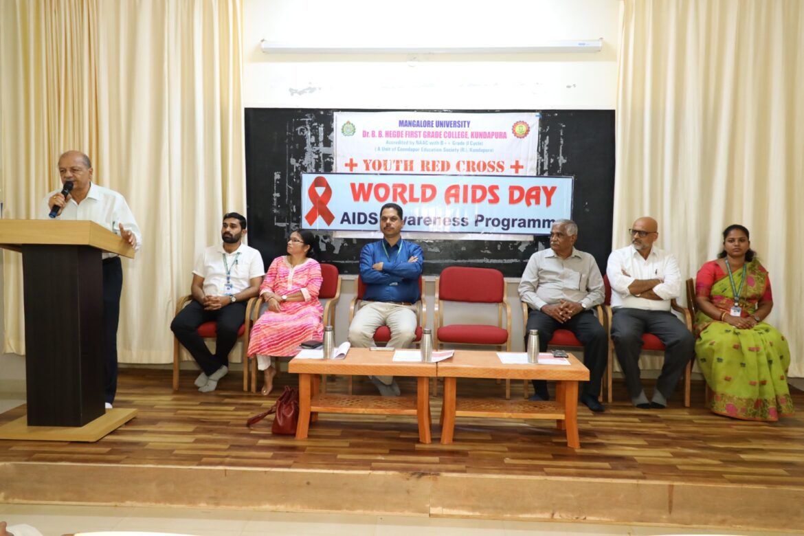 ಕುಂದಾಪುರ : ಡಾ| ಬಿ. ಬಿ. ಹೆಗ್ಡೆ ಪ್ರಥಮ ದರ್ಜೆ ಕಾಲೇಜಿನ ಯುವ ರೆಡ್ ಕ್ರಾಸ್ ಘಟಕ ಹಾಗೂ ಇಂಡಿಯನ ರೆಡ್ ಕ್ರಾಸ್ ಸೊಸೈಟಿ ಕುಂದಾಪುರ ಇವರ ಸಹಯೋಗದೊಂದಿಗೆ ಎಚ್ಐವಿ/ಏಡ್ಸ್ ಅರಿವು ಕಾರ್ಯಕ್ರಮ ಡಿಸೆಂಬರ್ 04 ರಂದು ಜರಗಿತು.ಇಂಡಿಯನ್ ರೆಡ್ ಕ್ರಾಸ್ ಘಟಕದ ಸಭಾಪತಿಗಳಾದ ಶ್ರೀ ಜಯಕರ್ ಶೆಟ್ಟಿ ಕಾರ್ಯಕ್ರಮವನ್ನು ಉದ್ದೇಶಿಸಿ ಇಂದಿನ ಯುವ ಸಮೂಹ ಹೇಗೆ ತಮ್ಮನ್ನು ಸಮಾಜದ ಆರೋಗ್ಯವಂತ ಪೀಳಿಗೆಯಾಗಿ ಮಾರ್ಪಡಿಸಿಕೊಳ್ಳಬೇಕು ಎಂದು ವಿದ್ಯಾರ್ಥಿಗಳಿಗೆ ತಿಳಿಸಿದದರು.