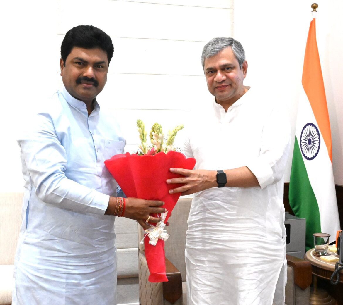 ಬೈಂದೂರು : ಸಂಸದ ಬಿ. ವೈ.ರಾಘವೇಂದ್ರ ಅವರು ಕೇಂದ್ರ ರೈಲ್ವೆ ಸಚಿವರಾದ ಶ್ರೀ ಅಶ್ವಿನಿ ವೈಷ್ಣವ್ ಅವರನ್ನು ಭೇಟಿಯಾಗಿ ಶಿವಮೊಗ್ಗ-ಶೃಂಗೇರಿ-ಮಂಗಳೂರು ಹೊಸ ರೈಲು ಮಾರ್ಗ ಮಂಜೂರಾತಿಗೆ ಮನವಿ ಮಾಡಿದರು.