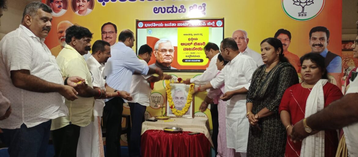 ಉಡುಪಿ : ಅಜಾತಶತ್ರು ಮಾಜಿ ಪ್ರಧಾನಿ ಭಾರತ ರತ್ನ ಅಟಲ್ ಬಿಹಾರಿ ವಾಜಪೇಯಿಯವರ ಜನ್ಮ ದಿನಾಚರಣೆಯನ್ನು ಉಡುಪಿ ಜಿಲ್ಲಾ ಬಿಜೆಪಿ ವತಿಯಿಂದ ಬಿಜೆಪಿ ಜಿಲ್ಲಾಧ್ಯಕ್ಷ ಕುಯಿಲಾಡಿ ಸುರೇಶ್ ನಾಯಕ್ ಅಧ್ಯಕ್ಷತೆಯಲ್ಲಿ ಜಿಲ್ಲಾ ಕಛೇರಿಯಲ್ಲಿ ಪುಷ್ಪ ನಮನ ಸಲ್ಲಿಸುವ ಮೂಲಕ ಆಚರಿಸಲಾಯಿತು.