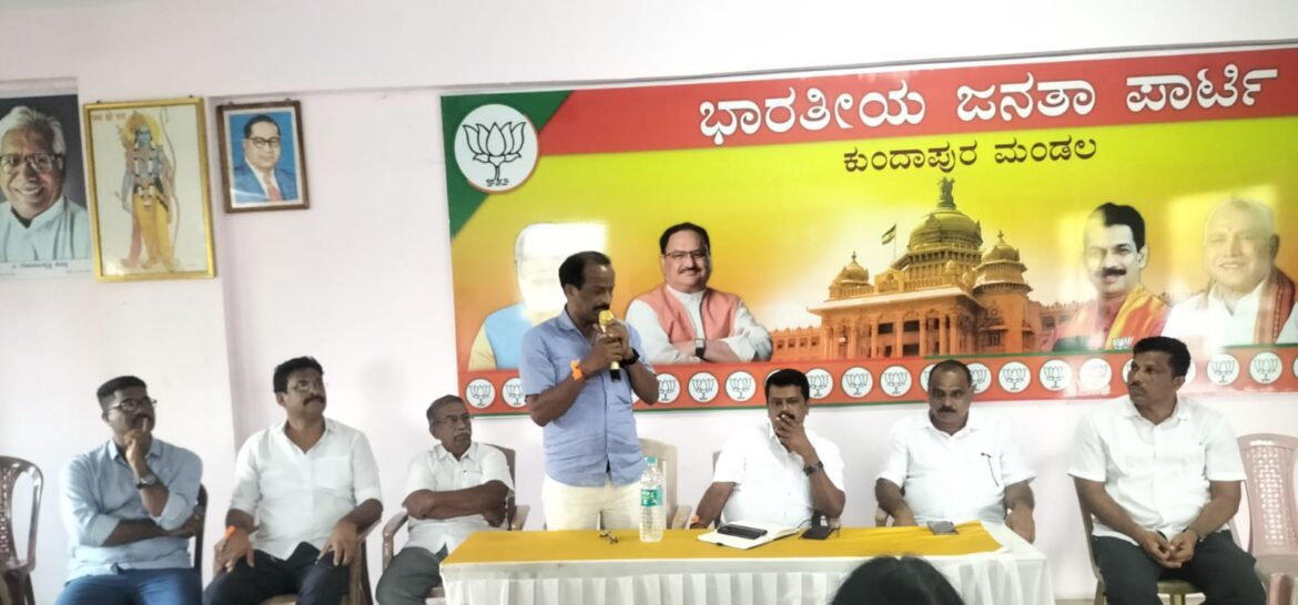 ಪಕ್ಷದ ಕಚೇರಿಯಲ್ಲಿ ಜರುಗಿದ ಸಭೆಯ ಅಧ್ಯಕ್ಷತೆಯನ್ನು ಶಾಸಕರಾದ ಶ್ರೀ ಎ.ಕಿರಣ್ ಕುಮಾರ್ ಕೊಡ್ಗಿಯವರು ವಹಿಸಿದ್ದರು ಕುಂದಾಪುರ ಬಿಜೆಪಿ ಕ್ಷೇತ್ರಧ್ಯಕ್ಷರಾದ ಶಂಕರ ಅಂಕದಕಟ್ಟೆ ಸಭಯನ್ನುದ್ಧೇಶಿಸಿ ಮಾತನಾಡಿದರು ಸಭೆಯಲ್ಲಿ ಬಿಜೆಪಿ ಜಿಲ್ಲಾ ಉಪಾಧ್ಯಕ್ಷರಾದ ರವಿ ಅಮೀನ್ ಮಂಗಳೂರು ಸಹ ಪ್ರಭಾರಿ ರಾಜೇಶ್ ಕಾವೇರಿ ಜಿಲ್ಲಾ ಕಾರ್ಯದರ್ಶಿ ಸದಾನಂದ ಬಳ್ಕೂರ್ ಉಪಸ್ಥಿತರಿದ್ದರು ಬಿಜೆಪಿ ಪ್ರಧಾನ ಕಾರ್ಯದರ್ಶಿ ಸುರೇಶ್ ಶೆಟ್ಟಿ ಗೋಪಾಡಿ ಸ್ವಾಗತಿಸಿ ವಂದಿಸಿದರು