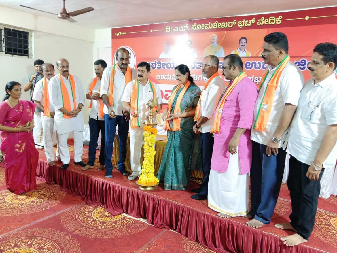 ಕೇಂದ್ರ ಸಚಿವೆ ಶೋಭಾ ಕರಂದ್ಲಾಜೆ ಮಾತನಾಡಿ, ಭಾರತ ವಿಕಸಿತ ಭಾರತವಾಗಿ ಅಭಿವೃದ್ಧಿ ಹೊಂದುತ್ತಿದೆ. ಈ ಬಾರಿ ಅಭಿವೃದ್ಧಿಯ ಕಾರ್ಯದ ಅಡಿಯಲ್ಲೇ ಚುನಾವಣೆ ಎದುರಿಸಲಿದ್ದೇವೆ ಎಂದರು. ಜಿಲ್ಲಾಧ್ಯಕ್ಷ ಕಿಶೋರ್ ಕುಮಾರ್ ಕುಂದಾಪುರ ಅಧ್ಯಕ್ಷತೆ ವಹಿಸಿದ್ದರು. ಶಾಸಕ ಯಶಪಾಲ್ ಎ. ಸುವರ್ಣ, ಜಿಲ್ಲಾ ಪ್ರಧಾನ ಕಾರ್ಯದರ್ಶಿ ರೇಶ್ಮಾ ಉದಯ ಶೆಟ್ಟಿ ಮಾಜಿ ಜಿಲ್ಲಾಧ್ಯಕ್ಷ ಕುಯಿಲಾಡಿ ಸುರೇಶ್ ನಾಯಕ್ ವಿಭಾಗ ಪ್ರಭಾರಿ ಉದಯ ಕುಮಾರ್ ಶೆಟ್ಟಿ ಮಾಜಿ ಶಾಸಕರಾದ ಕೆ.ರಘಪತಿ ಭಟ್, ಲಾಲಾಜಿ ಮೆಂಡನ್ ಉಪಸ್ಥಿತರಿದ್ದರು ವಿಧಾನಸಭಾ ಕ್ಷೇತ್ರದ ಪ್ರಭಾರಿ ಹಾಗೂ ಸಂಚಾಲಕರಿಗೆ ಬಿಜೆಪಿ ಶಾಲು ಹೊದೆಸಿ ಸಮ್ಮಾನಿಸಲಾಯಿತು ಕೆ. ರಾಘವೇಂದ್ರ ಕಿಣಿ ನಿರೂಪಿಸಿದ ಕಾರ್ಯಕ್ರಮದಲ್ಲಿ ಕ್ಷೇತ್ರದ ಚುನಾವಣೆ ಸಂಚಾಲಕರಾದ ಕುತ್ಯಾರು ನವೀನ್ ಶೆಟ್ಟಿ ಸ್ವಾಗತಿಸಿ ಜಿಲ್ಲಾ ಪ್ರಧಾನ ಕಾರ್ಯದರ್ಶಿಗಳಾದ ಹೆರ್ಗ ದಿನಕರ ಶೆಟ್ಟಿ ವಂದಿಸಿದರು