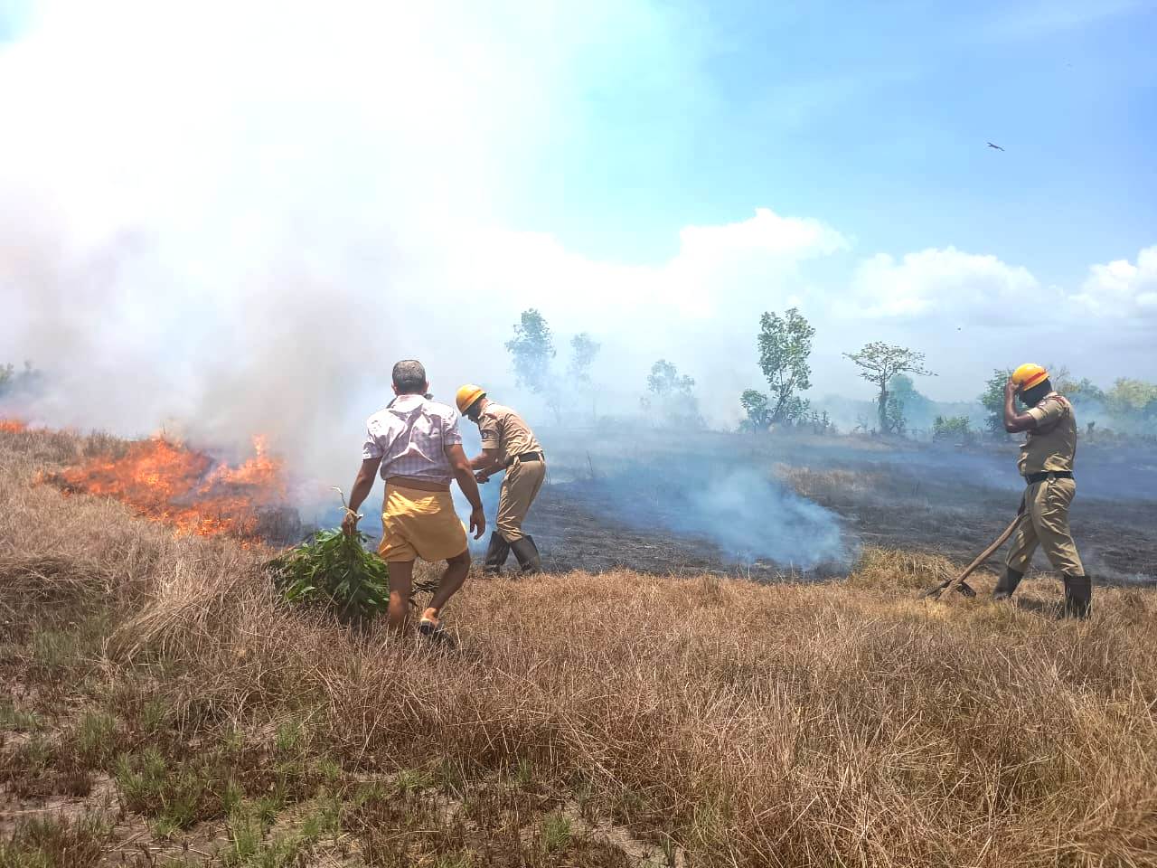 ಮಣಿಪಾಲದ ಮಾಹೆಗೆ ಸಂಬಂಧಿಸಿದ ಸ್ಥಳೀಯರಿಂದ ಖರೀದಿಸಿದ ಸ್ಥಳಗಳು ಕೃಷಿ ಕಾಯಕದಿಂದ ಮುಕ್ತಿಗೊಂಡಿದ್ದು ಸುಮಾರು ಹತ್ತು ಎಕ್ಕರೆ ಮಿಕ್ಕಿ ಪ್ರದೇಶ ಬೆಂಕಿ ಆವರಿಸಿಕೊಂಡಿದೆ ಈ ಬಗ್ಗೆ ಸ್ಥಳೀಯರು ಗ್ರಾ.ಪಂ ಉಪಾಧ್ಯಕ್ಷ ವೈ ಬಿ ರಾಘವೇಂದ್ರ ಹಾಗೂ ಸದಸ್ಯೆ ಸುಜಾತ ವೆಂಕಟೇಶ ಇವರಿಗೆ ಕರೆ ಮಾಡಿ ತಿಳಿಸಿ ಬೆಂಕಿ ನಂದಿಸುವ ಕಾರ್ಯಕ್ಕೆ ಮುಂದಾಗಿದ್ದಾರೆ.
