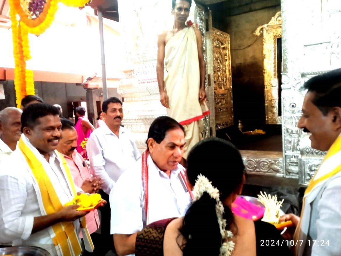 ಕೋಟ : ಶರನ್ನವರಾತ್ರಿಯ ಐದನೇ ದಿನದಂದು ಇಲ್ಲಿನ ಕೋಟದ ಹಲವು ಮಕ್ಕಳ ತಾಯಿ ಅಮೃತೇಶ್ವರಿ ಅಮ್ಮನ ಸನ್ನಿಧಾನಕ್ಕೆ ರಾಜ್ಯ ಕಾಂಗ್ರೆಸ್ ಸರಕಾರದ ಸಾರಿಗೆ, ಮುಜರಾಯಿ ಇಲಾಖೆ ಸಚಿವ ರಾಮಲಿಂಗ ರೆಡ್ಡಿರವರ ಆಪ್ತ ಶಂಕರ್ ಶೆಟ್ಟಿ ರವರು ಕುಟುಂಬ ಸಮೇತವಾಗಿ ದೇವಿಯ ದರ್ಶನ ಪಡೆದರು. ದೇವಸ್ಥಾನದ ವ್ಯವಸ್ಥಾಪನ ಸಮಿತಿ ಅಧ್ಯಕ್ಷ ಆನಂದ ಸಿ ಕುಂದರ್ ಹಾಗೂ ದೇವಸ್ಥಾನದ ವ್ಯವಸ್ಥಾಪನ ಸಮಿತಿ ಸದಸ್ಯರ ವತಿಯಿಂದ ಶಾಲು ಹೊದಿಸಿ ದೇವರ ಪ್ರಸಾದ ಫಲ ಪುಷ್ಪ ನೀಡಿ ಗೌರವಿಸಲಾಯಿತು.
