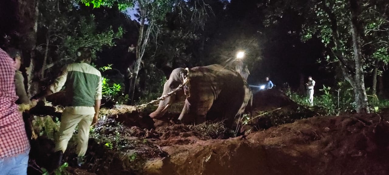 ಪೊಲೀಸ್ ಠಾಣೆಯ ಅಧಿಕಾರಿಗಳು ಹಾಗೂ ಸಿಬ್ಬಂದಿ ವರ್ಗದವರು ಭಾಗವಹಿಸಿದ್ದು ಜೆಸಿಬಿ ಯಂತ್ರದ ಸಹಾಯದಿಂದ ಒಂಟಿ ಸಲಗವನ್ನು ಸೆರೆ ಹಿಡಿದಿದ್ದಾರೆ