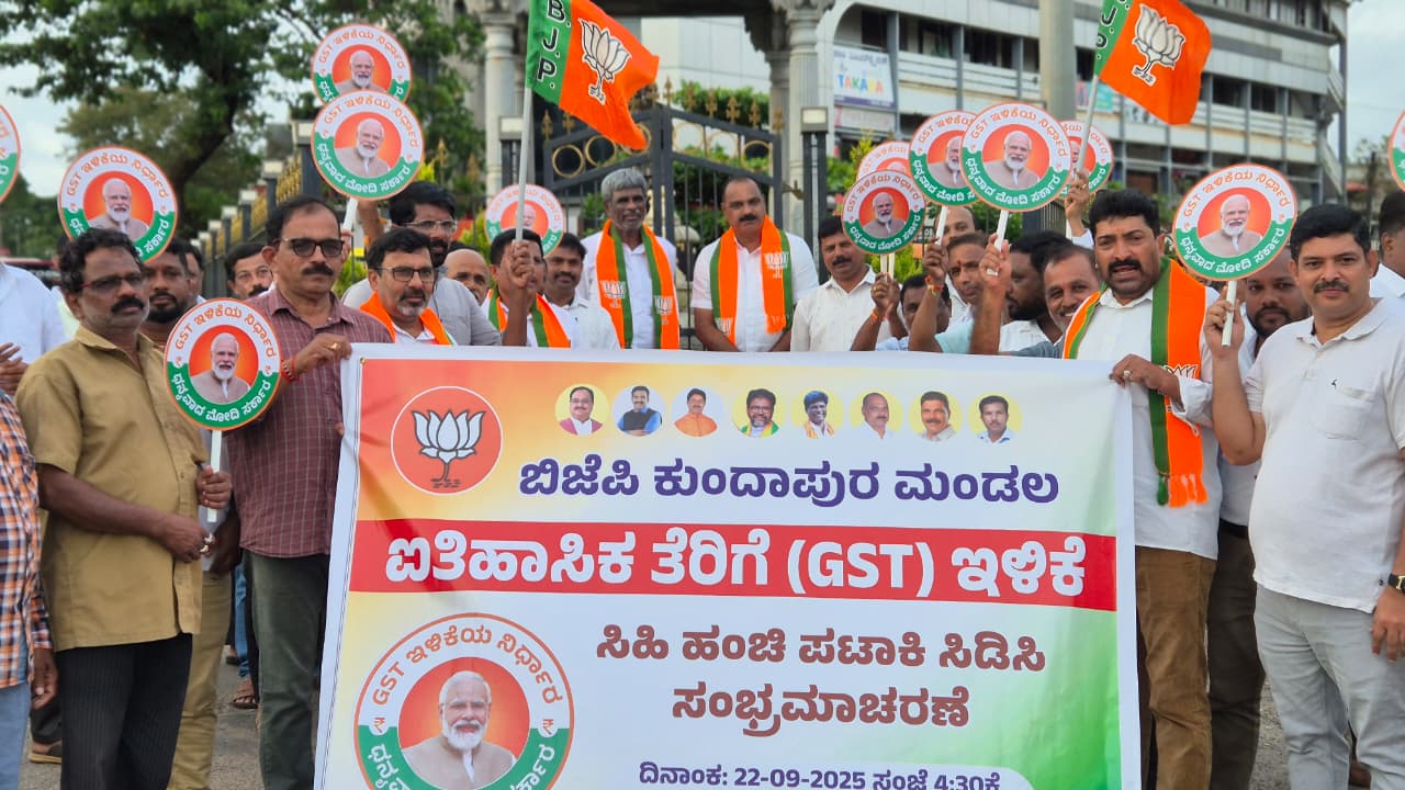 ಈ ಸಂದರ್ಭದಲ್ಲಿ ಕುಂದಾಪುರ ವಿಧಾನಸಭಾ ಕ್ಷೇತ್ರದ ಶಾಸಕರಾದ ಎ ಕಿರಣ್ ಕುಮಾರ್ ಕೊಡ್ಗಿಯವರು ಮಾತನಾಡಿ ಬಡ ಹಾಗೂ ಮಧ್ಯಮ ವರ್ಗದವರಿಗೆ ನವರಾತ್ರಿಯ ಶುಭದಿನದಂದು ಒಳ್ಳೆಯ ಗಿಫ್ಟನ್ನು ದೇಶದ ಜನತೆಗೆ ನೀಡಿರುವ ಬಗ್ಗೆ ಹರ್ಷ ವ್ಯಕ್ತಪಡಿಸಿದರು.ಕುಂದಾಪುರ ಮಂಡಲ ಬಿಜೆಪಿ ಅಧ್ಯಕ್ಷ ಸುರೇಶ್ ಶೆಟ್ಟಿ ಗೋಪಾಡಿ ಅವರು ಈ ಸಂಭ್ರಮಾಚರಣೆ ನೇತೃತ್ವವನ್ನು ವಹಿಸಿದ್ದರು.