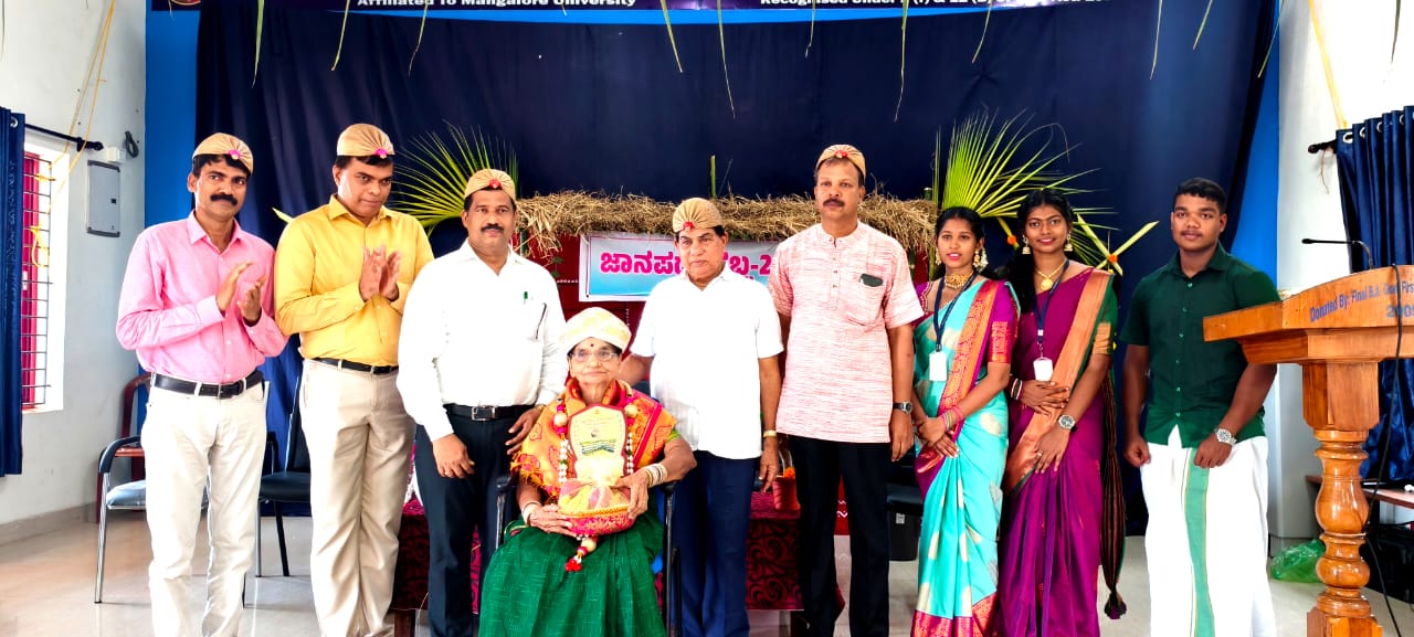 ಜಾನಪದ ಹಬ್ಬದ ಅಂಗವಾಗಿ ಕಾರ್ಯಕ್ರಮವನ್ನು ವಿಶಿಷ್ಠವಾಗಿ ಆಯೋಜಿಸಿದ್ದು ಗಣ್ಯರಿಗೆ ಕಾಲು ತೊಳೆಯಲು ನೀರು ನೀಡಿ ಆಹ್ವಾನಿಸಲಾಯಿತು. ಒಳ ಪ್ರವೇಶಿಸುತ್ತಿದಂತೆ ಬೆಲ್ಲ ನೀರು ಕೊಟ್ಟು ಸಭಾಂಗಣದ ಒಳಗೆ ಪ್ರವೇಶಿಸಲಾಯಿತು.ನಂತರ ಕಾಲೇಜಿನ ಒಳ ಸಭಾಂಗಣದಲ್ಲಿ ಜಾನಪದ ಪರಿಕರ ಪ್ರದರ್ಶನ ಏರ್ಪಡಿಸಿದ್ದು,ವಿದ್ಯಾರ್ಥಿಗಳು ತೆಂಗಿನ ಗರಿಯಲ್ಲಿ ಚಪ್ಪರಗೈದು ,ರಂಗೋಲಿ ಬಿಡಿಸಿ ಕಾರ್ಯಕ್ರಮದ ಮೆರುಗು ಹೆಚ್ಚಿಸಿದರು.