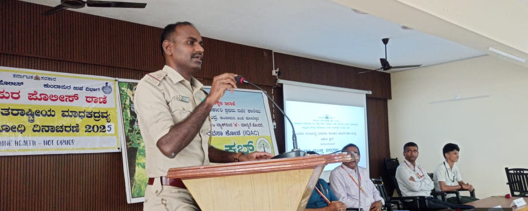 ಕೋಟೇಶ್ವರ : ಶ್ರೀ ಕಾಳಾವರ ವರದರಾಜ ಎಂ. ಶೆಟ್ಟಿ ಸರ್ಕಾರಿ ಪ್ರಥಮ ದರ್ಜೆ ಕಾಲೇಜು ಮತ್ತು ಸ್ನಾತಕೋತ್ತರ ಅಧ್ಯಯನ ಕೇಂದ್ರ ಕುಂದಾಪುರ ಇಲ್ಲಿನ ಆಂತರಿಕ ಗುಣಮಟ್ಟ ಭರವಸಾ ಕೋಶ ಹಾಗೂ ಇಕೋ ಕ್ಲಬ್ ಸಹಯೋಗದೊಂದಿಗೆ ವ್ಯಸನ ಮುಕ್ತ ಸಮಾಜ ಎಂಬ ಶೀರ್ಷಿಕೆಯಡಿಯಲ್ಲಿ ಕಾರ್ಯಗಾರವನ್ನು ವಿದ್ಯಾರ್ಥಿಗಳಿಗಾಗಿ ಏರ್ಪಡಿಸಲಾಗಿತ್ತು. ಈ ಕಾರ್ಯಗಾರದಲ್ಲಿ ಮುಖ್ಯ ಅತಿಥಿಗಳಾಗಿ ಕುಂದಾಪುರ ಪೋಲೀಸ್ ಉಪ ನಿರೀಕ್ಷಕರಾದ ನಂಜಾ ನಾಯಕ್ ಅವರು ಆಗಮಿಸಿ ಸದೃಢ ಸಮಾಜದ ನಿರ್ಮಾಣದಲ್ಲಿ ಯುವ ಜನತೆ ತಮ್ಮ ಜವಾಬ್ದಾರಿಯನ್ನು ಸಮರ್ಪಕವಾಗಿ ನಿರ್ವಹಿಸಬೇಕು. ಈ ನಿರ್ವಹಣೆಯಲ್ಲಿ ಸಮಾಜಕ್ಕೆ ತೊಡಕಾಗಿರುವ ಮಾದಕ ದ್ರವ್ಯಗಳ ಸೇವನೆಯಿಂದ ದೂರವಿದ್ದು ಸಮಾಜಕ್ಕೆ ಕೊಡುಗೆ ನೀಡಬೇಕೆಂದು ವಿದ್ಯಾರ್ಥಿಗಳಿಗೆ ಕರೆ ನೀಡಿದರು.