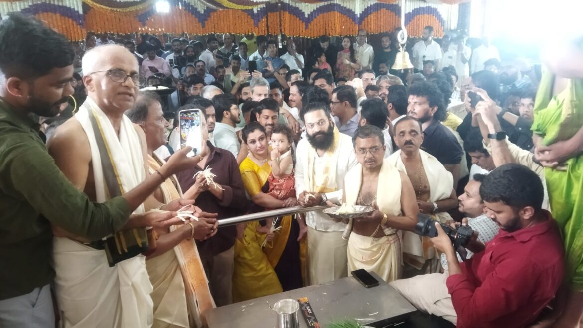 ಕುಂಭಾಸಿ : ಕಾಂತಾರ-2 ಚಿತ್ರದ ಮೊದಲ ಅಧ್ಯಾಯಕ್ಕೆ ನಿನ್ನೆ ಮುಹೂರ್ತ ನಡೆದಿದೆ. ಕುಂದಾಪುರದ ಕುಂಭಾಸಿಯ ಶ್ರೀ ವಿನಾಯಕ ದೇವಸ್ಥಾನದಲ್ಲಿ ಚಿತ್ರತಂಡ ವಿಶೇಷ ಪೂಜೆಯನ್ನ ಸಲ್ಲಿಸಿ ಉದ್ಭವಮೂರ್ತಿ ವಿನಾಯಕ ದೇವರಿಗೆ ಮೂಡು ಗಣಪತಿ ಸೇವೆ, ತ್ರಿಕಾಲ ಸೇವೆ ಅನ್ನದಾನ ಸೇವೆ ನಡೆಸುತು.ಈ ಸಂದರ್ಭದಲ್ಲಿ ದೇವಾಲಯವನ್ನು ವಿಶೇಷವಾಗಿ ವಿಧ ವಿಧದ ಹೂವುಗಳಿಂದ ಶೃಂಗರಿಸಲಾಗಿತ್ತು