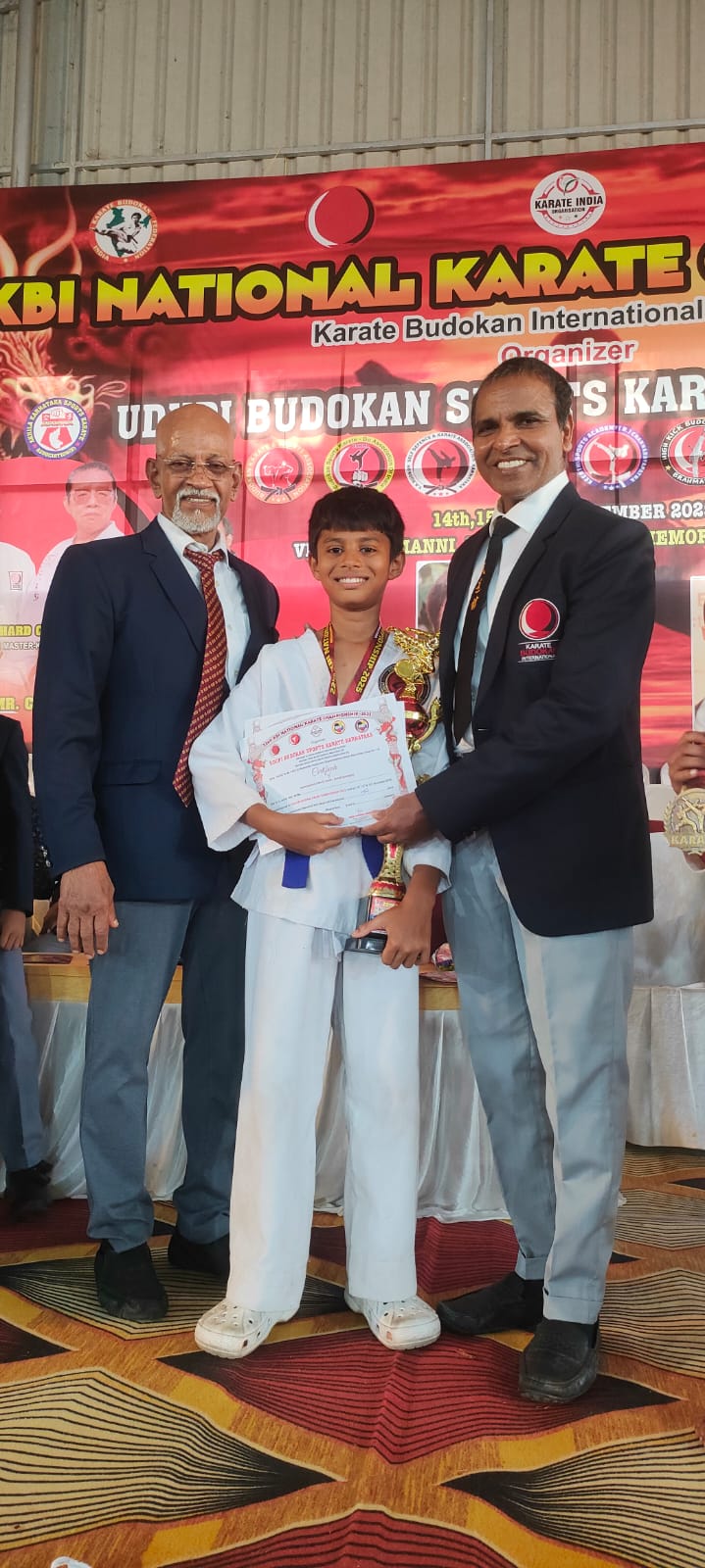 ಕುಂದಾಪುರ: ಇತ್ತೀಚೆಗೆ ಉಡುಪಿಯಲ್ಲಿ ಉಡುಪಿ ಬುಡೋಕಾನ್ ಸ್ಪೋರ್ಟ್ಸ್ ಕರಾಟೆ ಕರ್ನಾಟಕ ಇವರು ನಡೆಸಿದ ೨೨ನೇ ರಾಷ್ಟ್ರ ಮಟ್ಟದ ಕರಾಟೆ ಸ್ಪರ್ಧೆ – ೨೦೨೫ ರಲ್ಲಿ ಕೆ.ಡಿ.ಎಫ್. ಕರಾಟೆ ಕುಂದಾಪುರ ಇದರ ವಿದ್ಯಾರ್ಥಿ ಅಕ್ಷ್ ಎಸ್. ಕುಂದಾಪುರ ಕುಮಿಟೆ ಮತು ಕಟಾ ವಿಭಾಗದಲ್ಲಿ ಪ್ರಥಮ ಸ್ಥಾನ ಪಡೆದಿರುತ್ತಾನೆ. ಈತನಿಗೆ ಏಷ್ಯನ್ ಕರಾಟೆ ಹಾಗೂ ಕರಾಟೆ ಬುಡೋಕಾನ್ ಇಂಡಿಯಾ ಮುಖ್ಯ ತರಬೇತುದಾರರಾದ ಶ್ರೀ ಪರಮೇಶರವರು ಟ್ರೋಫಿ, ಮೆಡಲ್ ಹಾಗೂ ಸರ್ಟಿಫಿಕೇಟ್ ನೀಡಿ ಗೌರವಿಸಿರುತ್ತಾರೆ. ಇವನಿಗೆ ಕಿರಣ್ಸ್ ಡ್ರಾಗನ್ ಫಿಸ್ಟ್ ಮಾರ್ಷಲ್ ಆರ್ಟ್ಸ್ನ ಅಧ್ಯಕ್ಷರಾದ ಕಿರಣ್ ಕುಂದಾಪುರ ಹಾಗೂ ಸಂದೀಪ ವಿ. ಕಿರಣ್ ತರಬೇತಿ ನೀಡಿರುತ್ತಾರೆ. ಕುಂದಾಪುರದ ಎಚ್.ಎಂ.ಎಂ. ಆಂಗ್ಲ ಮಾಧ್ಯಮ ಶಾಲೆಯಲ್ಲಿ ೫ನೇ ತರಗತಿಯಲ್ಲಿ ಓದುತ್ತಿರುವ ಈತ ಶ್ರೀಮತಿ ರೇಣುಕಾ ಮತ್ತು ಶ್ರೀ ಸಂದೀಪ ವಿ. ಕಿರಣ್ ದಂಪತಿಗಳ ಪುತ್ರನಾಗಿರುತ್ತಾನೆ.