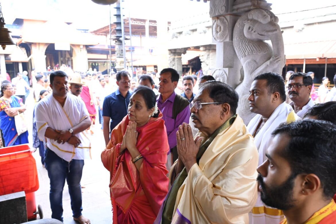 ಕುಂದಾಪುರ : ಕೊಲ್ಲೂರು ಶ್ರೀ ಮೂಕಾಂಬಿಕ ದೇವಸ್ಥಾನಕ್ಕೆ ಗ್ರಹ ಸಚಿವ ಡಾ. ಜಿ ಪರಮೇಶ್ವರ್ ದಂಪತಿ ಸಮೇತ ಭೇಟಿ ನೀಡಿ ವಿಶೇಷ ಪೂಜೆ ಸಲ್ಲಿಸಿದ್ದಾರೆ ಬುಧವಾರ ಬೆಳಗ್ಗೆ ಶ್ರೀ ಮೂಕಾಂಬಿಕ ದೇಗುಲದಲ್ಲಿ ಚಂಡಿಕಾಹೋಮ ಕಾರ್ಯಕ್ರಮದಲ್ಲಿ ಕುಟುಂಬ ಸಮೇತರಾಗಿ ಗೃಹ ಸಚಿವರು ಭಾಗಿಯಾದರು ಪ್ರಧಾನ ಅರ್ಚಕ ಸುಬ್ರಹ್ಮಣ್ಯ ಅಡಿಗರವರ ನೇತೃತ್ವದಲ್ಲಿ ಚಂಡಿಕಾ ಹೋಮ ನಡೆಯಿತು