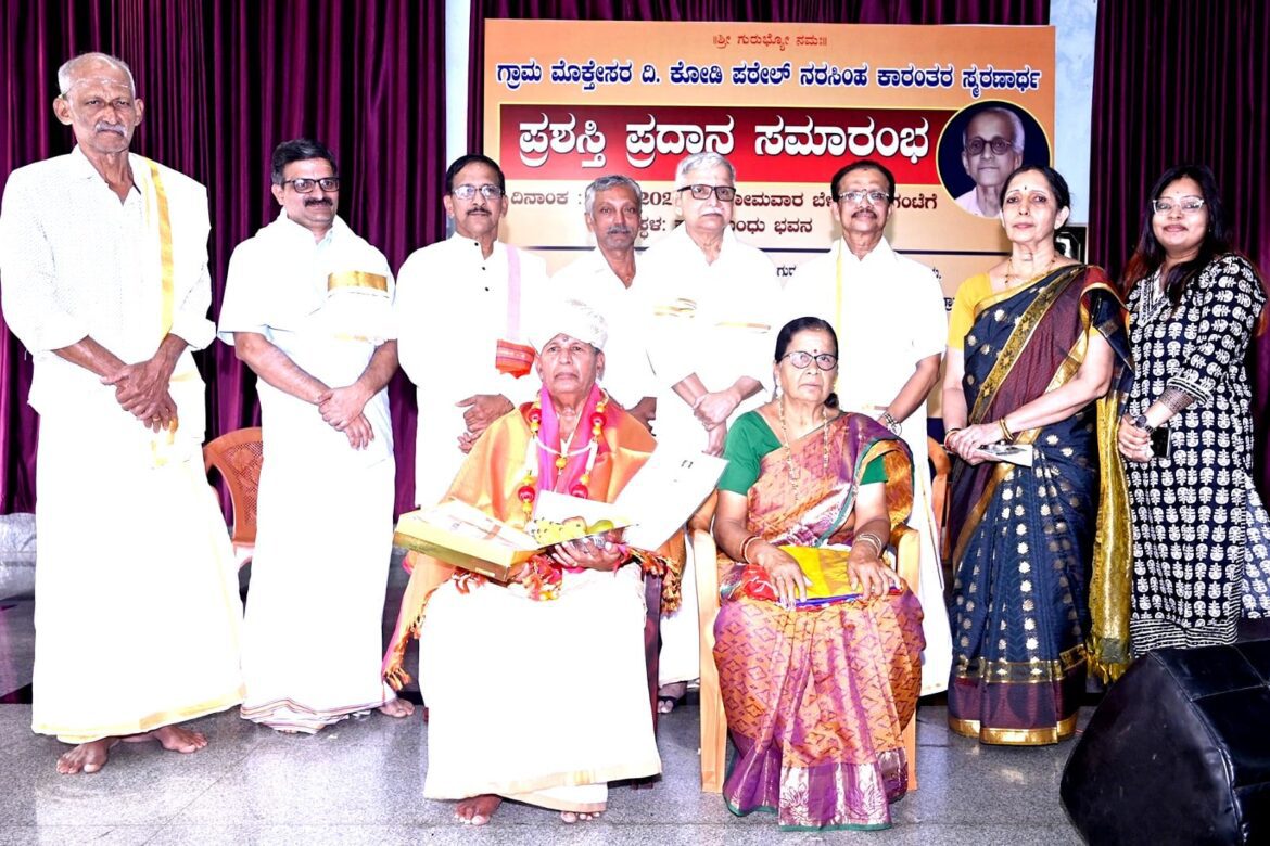 ಕೋಟ : ಸಾಲಿಗ್ರಾಮದ ಶ್ರೀ ಗುರು ನರಸಿಂಹ ದೇವಸ್ಥಾನದ ಪಾರಂಪರಿಕ ಮನೆಯಕ್ಕಿ ಸಮಾರಾಧನೆಯ ದಿನದ ಅಂಗವಾಗಿ ನಡೆದ ಸರಳ ಸಮಾರಂಭದಲ್ಲಿ ಕೋಡಿ ಗ್ರಾಮ ಮೊಕ್ತೇಸರ ದಿ.ಪಠೇಲ್ ನರಸಿಂಹ ಕಾರಂತರ ಸ್ಮರಣಾರ್ಥ ಜೀವಮಾನ ಸಾಧನಾ ಪ್ರಶಸ್ತಿಯನ್ನು ಮಣೂರು-ಪಡುಕರೆ ಗ್ರಾಮ ಮೊಕ್ತೇಸರ ಕೃಷ್ಣ ಹಂದೆಯವರಿಗೆ ಪ್ರದಾನ ಮಾಡಲಾಯಿತು.