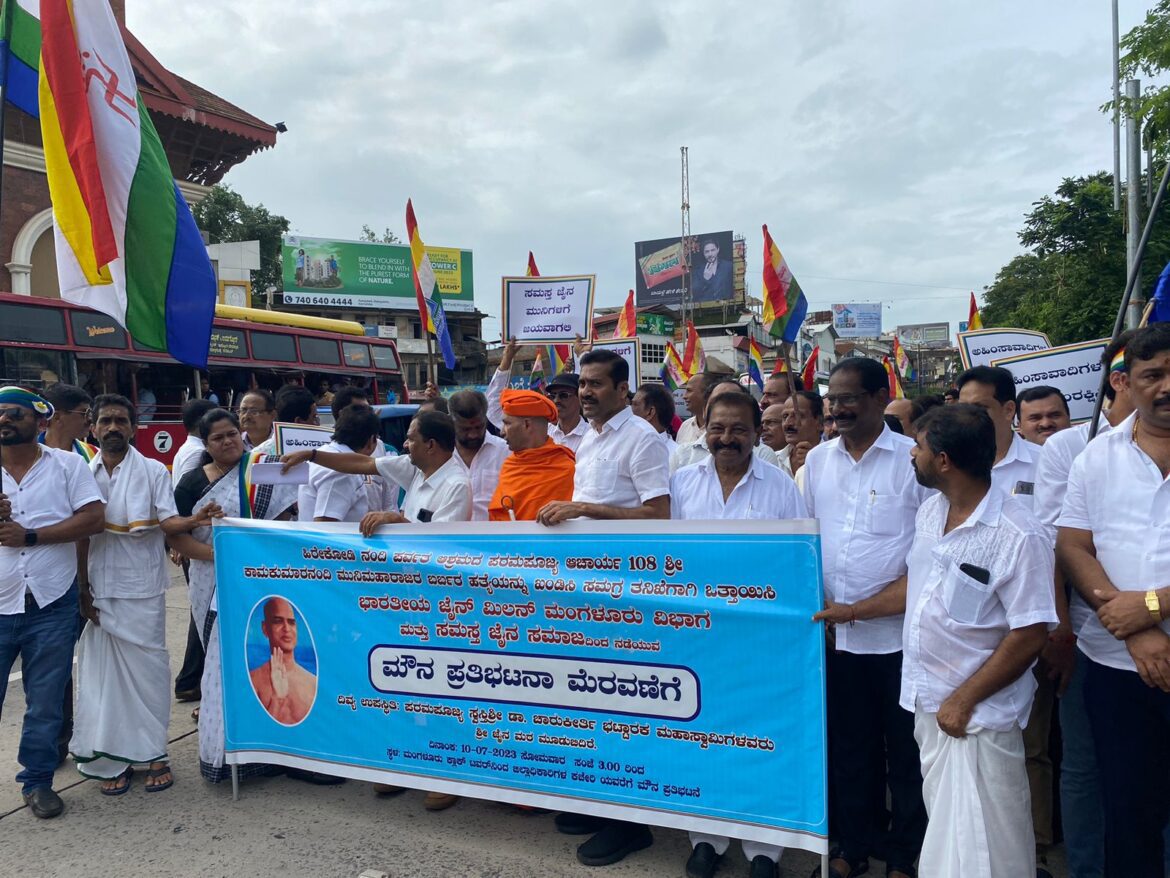 ಮಂಗಳೂರು: ಚಿಕ್ಕೋಡಿಯ ಜೈನಮುನಿ ಹತ್ಯಯನ್ನು ಖಂಡಿಸಿ ರಾಜ್ಯದೆಲ್ಲೆಡೆ ಪ್ರತಿಭಟನೆ ನಡೆಯಿತು ಚಿಕ್ಕೋಡಿಯ ಜೈನಮುನಿ ನಂದಿ ಮಹಾರಾಜ ಅವರ ಹತ್ಯೆಯನ್ನು ಖಂಡಿಸಿ ಸಮಗ್ರ ತನಿಖೆಗೆ ಒತ್ತಾಯಿಸಿ ಭಾರತೀಯ ಜೈನ್ ಮಿಲನ್ ಮಂಗಳೂರು ವಿಭಾಗದ ನೇತೃತ್ವದಲ್ಲಿ ಸಮಗ್ರ ಜೈನ ಸಮಾಜ ವತಿಯಿಂದ ಮಂಗಳೂರು ನಗರದಲ್ಲಿ ಸೋಮವಾರ ಮೌನ ಪತಿಭಟನೆ ನಡೆಸಿ ಜಿಲ್ಲಾಧಿಕಾರಿ ಮೂಲಕ ಮುಖ್ಯಮಂತ್ರಿ ಅವರಿಗೆ ಮನವಿ ಸಲ್ಲಿಸಲಾಯಿತು