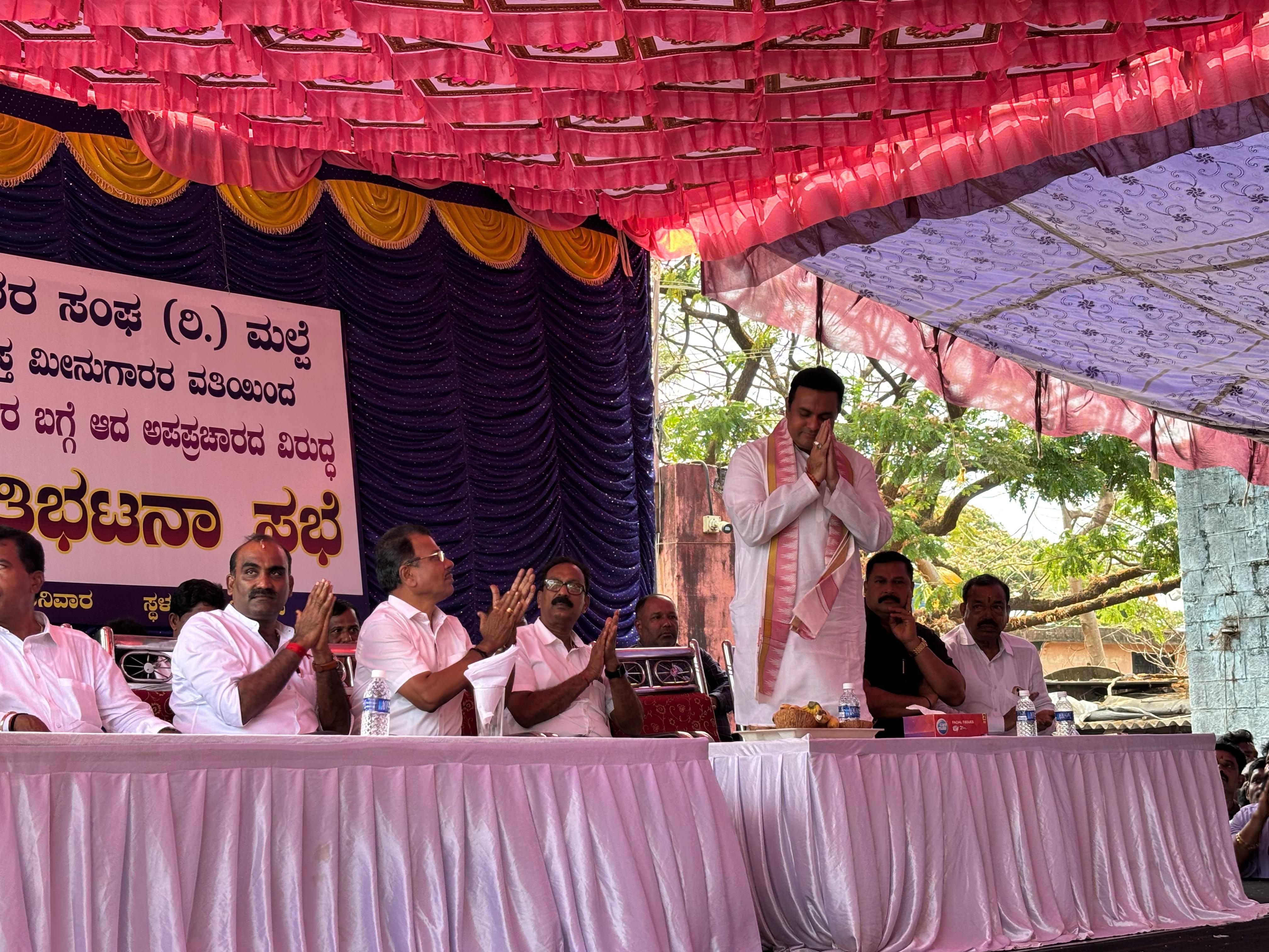 ಮಲ್ಪೆ ಮೀನುಗಾರರ ಸಂಘ ಹಾಗೂ ಸಮಸ್ತ ಮೀನುಗಾರರ ವತಿಯಿಂದ ಮಲ್ಪೆ ಬಂದರಿನ ಮೀನುಗಾರರ ಬಗ್ಗೆ ಅಪಪ್ರಚಾರವಾಗಿದೆ ಎಂದು ಆರೋಪಿಸಿ ಮಲ್ಪೆಯ ಸಮಸ್ತ ಮೀನುಗಾರರು ಮಲ್ಪೆ ಬಂದರಿನಲ್ಲಿ ಬೃಹತ್ ಪ್ರತಿಭಟನಾ ಸಭೆ ನಡೆಸಿದರು. ಸಭೆಯುದ್ದಕ್ಕೂ ಶಾಸಕ, ಮಾಜಿ ಸಚಿವ, ಮಾಜಿ ಶಾಸಕರು ಸೇರಿದಂತೆ ಮೀನುಗಾರ ಮುಖಂಡರು ಜಿಲ್ಲಾ ಎಸ್ಪಿ ಡಾ.ಅರುಣ್ ಅವರ ವಿರುದ್ಧ ಹರಿಹಾಯ್ದರು.