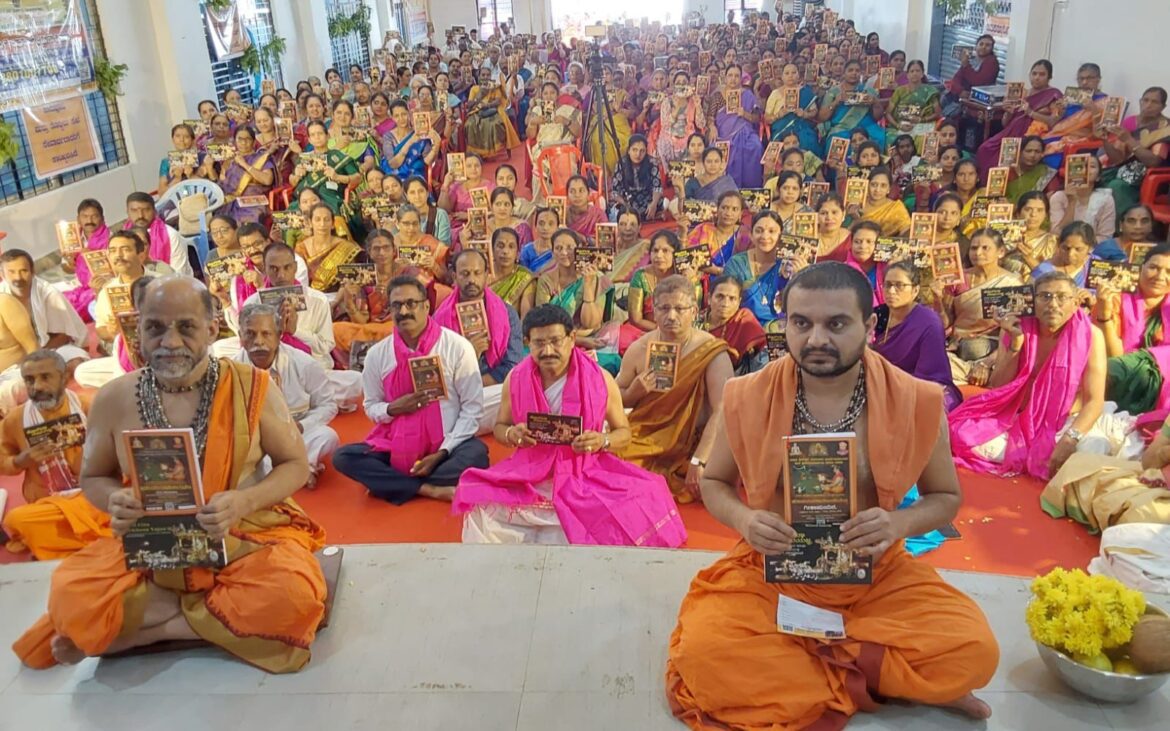 ಕುಶಾಲನಗರ : ಶ್ರೀ ಶ್ರೀ ಸುಗುಣೇಂದ್ರತೀರ್ಥ ಸ್ವಾಮೀಜಿ ಅವರ ಮಹೋನ್ನತ ಧಾರ್ಮಿಕ ಜಾಗತಿಕ ಸಂಕಲ್ಪ ಕೋಟಿ ಗೀತಾ ಲೇಖನ ಯಜ್ಞಕ್ಕೆ 1008 ಯಜ್ಞಕರ್ತರನ್ನು ನೋಂದಣಿ ಮಾಡಿಸಲು ಸ್ವತಃ ಶ್ರೀಪಾದರು ಪ್ರತಿಜ್ಞೆ ವಿಧಿ ಬೋಧಿಸಿದರು. ಕಿರಿಯ ಪಟ್ಟದ ಶ್ರೀ ಶ್ರೀ ಸುಶೀಂದ್ರ ತೀರ್ಥ ಶ್ರೀಪಾದರೂ ಉಪಸ್ಥಿತರಿದ್ದರು ಈ ಬೃಹತ್ ಕಾರ್ಯಕ್ರಮವನ್ನು ಕೊಡಗು ಜಿಲ್ಲೆಯ ಕುಶಾಲನಗರದ ಸಂಕರ್ಷಣ ಪ್ರಖಂಡ ಕೋಟಿ ಗೀತಾ ಲೇಖನ ಯಜ್ಞ ಪರಿವಾರ ಆಯೋಜಿಸಿತ್ತು ಡಿಸೆಂಬರ್ 27 ರಂದು ಗಾಯತ್ರಿ ಕಲ್ಯಾಣ ಮಂಟಪದಲ್ಲಿ ನಡೆದ ಕಾರ್ಯಕ್ರಮದಲ್ಲಿ ದಾಖಲೆಯ 1008 ಯಜ್ಞಕರ್ತರು ಭಾಗವಹಿಸಿದ್ದರು
