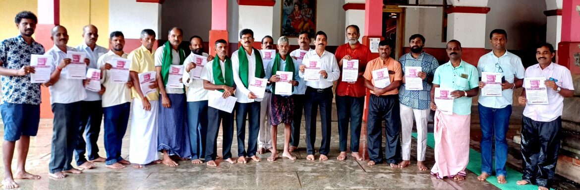 ಕೋಟ : ಇಲ್ಲಿನ ಬ್ರಹ್ಮಾವರ ತಾಲೂಕಿನ ಮಣೂರು, ಗಿಳಿಯಾರು, ಚಿತ್ರಪಾಡಿ, ಬನ್ನಾಡಿ, ಕಾರ್ಕಡ ಗ್ರಾಮದ ಕೃತಕ ನೆರೆ ಸಂತ್ರಸ್ತ ರೈತರ ಐತಿಹಾಸಿಕ ಬೃಹತ್ ಉಪವಾಸ ಸತ್ಯಾಗ್ರಹ ಹಾಗೂ ಹಕ್ಕೊತ್ತಾಯಗಳ ಕರಪತ್ರ ಬಿಡುಗಡೆ ಕಾರ್ಯಕ್ರಮವು ಆ.3 ರಂದು ಶನಿವಾರ ಬೆಳಿಗ್ಗೆ ಶ್ರೀ ಹಿರೇಮಹಾಲಿಂಗೇಶ್ವರ ದೇವಾಲಯದಲ್ಲಿ ನಡೆಯಿತು.