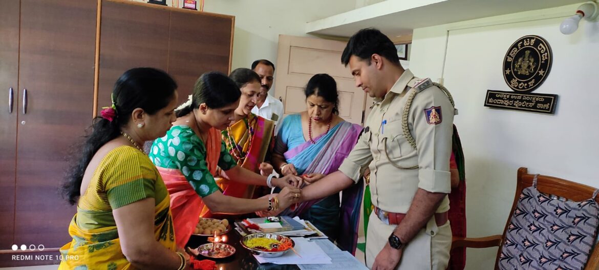 ಕುಂದಾಪುರ : ಶ್ರಾವಣ ಮಾಸದಲ್ಲಿ ಬರುವಂತಹ ಸಹೋದರ ಸಹೋದರಿಯರ ಬಾಂಧವ್ಯ ಬೆಸೆಯುವ ಪವಿತ್ರವಾದ ಹಬ್ಬ ರಕ್ಷಾ ಬಂಧನ ಆ ಪ್ರಯುಕ್ತ ಕುಂದಾಪುರ ಮಹಿಳಾ ಮೋರ್ಚಾ ಘಟಕದವರು ನಿನ್ನೆ ಬುಧವಾರ ಬೆಳಿಗ್ಗೆ ನಗರದ ಕುಂದಾಪುರ ಆರಕ್ಷಕ ಠಾಣೆಗೆ ತೆರಳಿ ಪೋಲಿಸ್ ಅಧಿಕಾರಿಗಳಿಗೆ, ಸಿಬ್ಬಂದಿಗಳಿಗೆ ರಕ್ಷೆ ಕಟ್ಟಿ ಆರತಿ ಬೆಳಗಿ ರಕ್ಷಾ ಬಂಧನದ ಶುಭ ಹಾರೈಸಿದರು