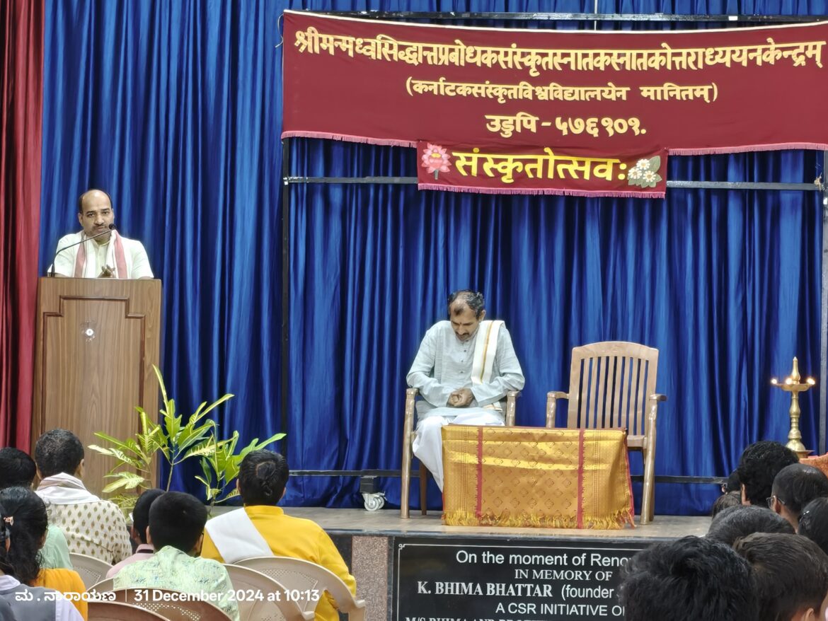 ಇವರು ಇಂದು ಉಡುಪಿಯ ಶ್ರೀಮನ್ಮಧ್ವಸಿದ್ಧಾಂತ ಪ್ರಬೋಧಕ ಸಂಸ್ಕೃತ ಕಾಲೇಜಿನಲ್ಲಿ ಸಂಸ್ಕೃತೋತ್ಸವ ಪ್ರಯುಕ್ತ ಸಂಸ್ಕೃತ ಸ್ಪರ್ಧೆಗಳನ್ನು ಉದ್ಘಾಟಿಸಿ ಮಾತನಾಡುತ್ತಿದ್ದರು. ವಿದ್ಯಾರ್ಥಿಗಳು ಸ್ಪರ್ಧೆಯಲ್ಲಿ ಉತ್ಸಾಹದಿಂದ ಭಾಗವಹಿಸಿ ಸಂಸ್ಕೃತದ ಲಾಭವನ್ನು ಪಡೆದುಕೊಳ್ಳುವಂತಾಗಲಿ. ಇದೊಂದು ಸದವಕಾಶವಾಗಿದೆ. ತಮಗೆಲ್ಲಾ ಒಳಿತಾಗಲಿ ಎಂದು ಆಶಿಸಿದರು.