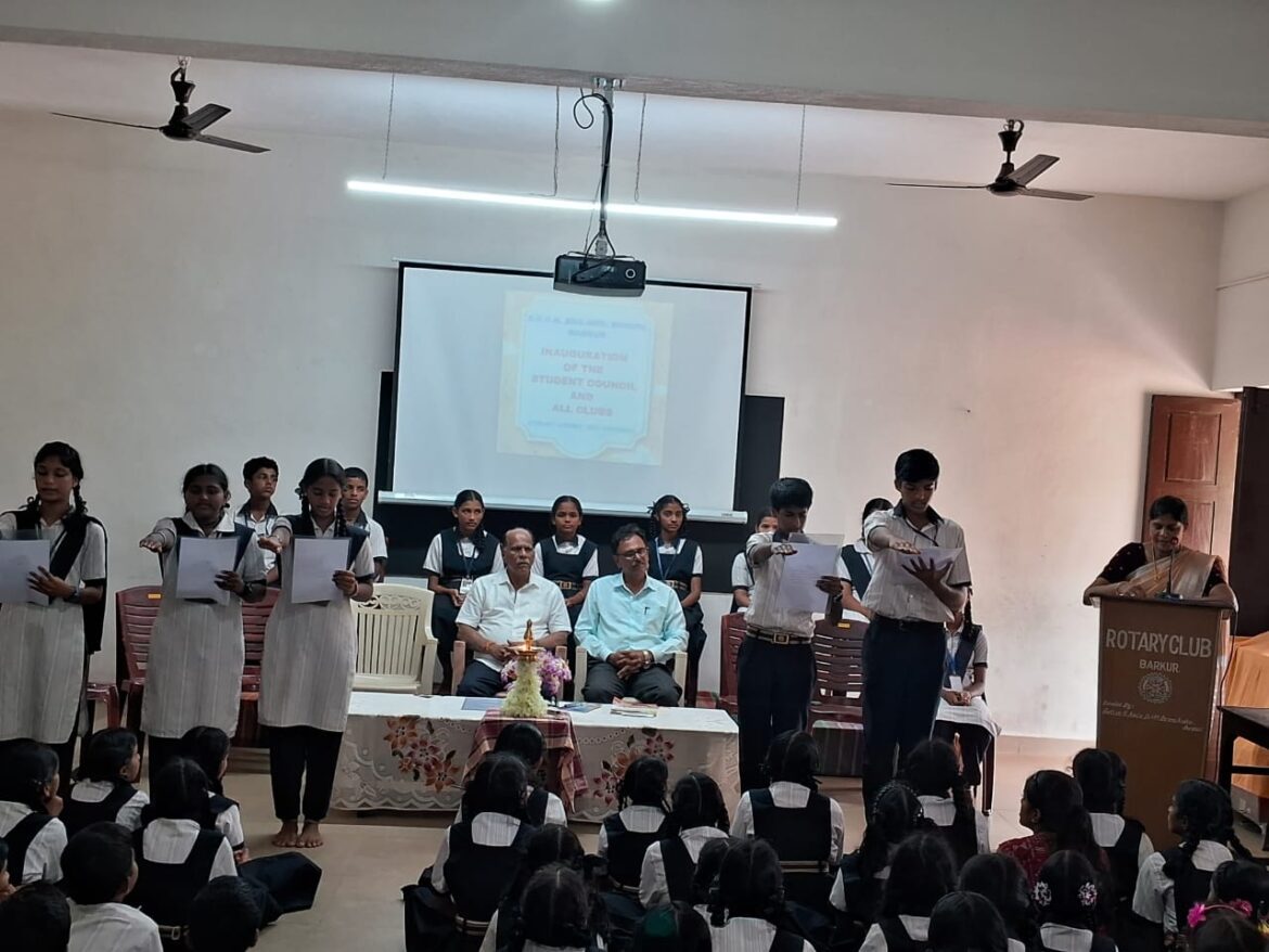 ಶಾಲೆಯ ಮುಖ್ಯ ಶಿಕ್ಷಕಿ ಶ್ರೀಮತಿ ಲಿಖಿತಾ ಕೊಠಾರಿ ರವರುಶಾಲಾ ಸಂಸತ್ತು ನ ಸದಸ್ಯರಿಗೆ ಪ್ರಮಾಣ ವಚನ ಭೋಧಿಸಿದರು.