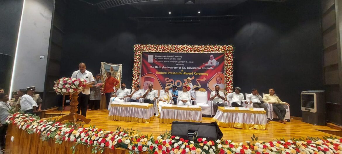 ಶಿವರಾಮ ಕಾರಂತರ ಸಾಹಿತ್ಯ ಕಲೆ ಸಂಸ್ಕೃತಿಯ ಅನಾವರಣ ಕಾರಂತ ಥೀಮ್ ಪಾರ್ಕ್ ಮೂಲಕ ಯುವ ಸಮೂಹವನ್ನು ತಲುಪುತ್ತಿದೆ ಕಾರಂತರು ಗಾಂಧೀಜಿ ಸಿದ್ಧಾಂತದ ಅನುಯಾಯಿಯಾಗಿದ್ದರು ಪದ್ಮಭೂಷಣ ಪ್ರಶಸ್ತಿಯನ್ನು ಹಿಂದೆ ನೀಡಿದ ಮಹಾನ್ ವ್ಯಕ್ತಿ ವಿಶ್ವಕೋಶ ಎಂದೇ ಖ್ಯಾತಿಯಾದ ಕಾರಂತರು ಆಧುನಿಕ ಠ್ಯಾಗೋರ್ ಎಂದು ಪ್ರಸಿದ್ಧರಾಗಿದ್ದರು ಎಂದು ಕರ್ನಾಟಕದ ಸಂಗೀತ ಲೋಕದ ದಿಗ್ಗಜರಾದ ಡಾ. ವಿದ್ಯಾಭೂಷಣರಿಗೆ ಡಾll ಶಿವರಾಮ ಕಾರಂತ ಹುಟ್ಟೂರ ಪ್ರಶಸ್ತಿ ಪ್ರದಾನ ಸಮಾರಂಭದಲ್ಲಿ ರಾಜ್ಯಪಾಲರಾದ ಥಾವರ್ ಚಂದ್ ಗೆಹ್ಲೋಟ್ ನುಡಿದರು