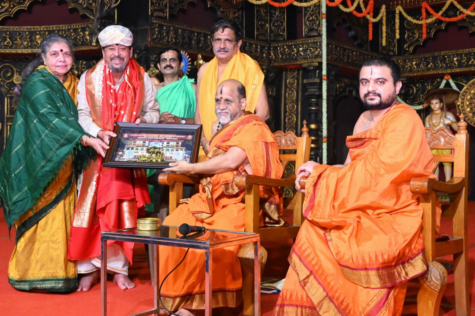 ಉಡುಪಿ : ಕನ್ನಡ ಸಿನಿಮಾರಂಗದ ಹಿರಿಯ ನಟ ಶ್ರೀ ರಮೇಶ್ ಭಟ್ ಅವರು ತಾವು ಬರೆದ ಗೀತಾಲೇಖನವನ್ನು ರಾಜಾಂಗಣದಲ್ಲಿ ಪರ್ಯಾಯ ಶ್ರೀಗಳಿಗೆ ಸಮರ್ಪಿಸಿದರು. ಕಿರಿಯ ಶ್ರೀಪಾದರು ಉಪಸ್ಥಿತರಿದ್ದರು