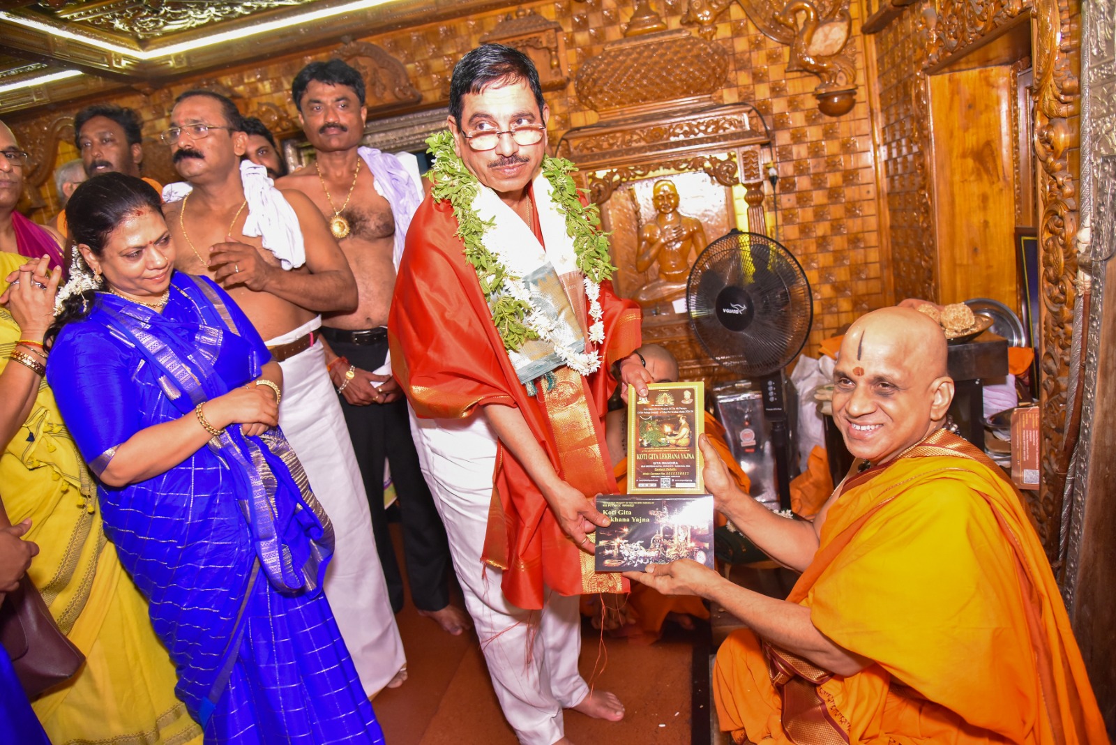 ನಂತರ ನಡೆದ ಸಭಾ ಕಾರ್ಯಕ್ರಮದಲ್ಲಿ ಮಾತನಾಡಿದ ಜೋಶಿ ಭಗವದ್ಗೀತಾ ಪ್ರಚಾರದ ಉದ್ದೇಶದಿಂದ ಪೂಜ್ಯರು ನಡೆಸುತ್ತಿರುವ ಕೋಟಿ ಗೀತಾ ಲೇಖನ ಯಜ್ಞದ ಆಂದೋಲನವನ್ನು ಪ್ರಶಂಸಿಸಿದರು.ಶ್ರೀ ಸುಗುಣೇಂದ್ರತೀರ್ಥ ಶ್ರೀಪಾದರು ಆಶೀರ್ವಚನ ನೀಡಿ, ಪ್ರಹ್ಲಾದ ಜೋಶಿ ಅವರನ್ನು ಆದರ್ಶ ರಾಜಕಾರಣಿ ಕಳಂಕ ರಹಿತ ರಾಜಕಾರಣಿ ಎಂದು ಪ್ರಶಂಸಿಸಿ ಸನ್ಮಾನಿಸಿದರು ಹಾಗೂ ಜೋಷಿ ದಂಪತಿಗಳಿಗೆ ಕೋಟಿ ಗೀತಾ ಲೇಖನ ಯಜ್ಞದ ದೀಕ್ಷೆಯನ್ನು ನೀಡಿದರು