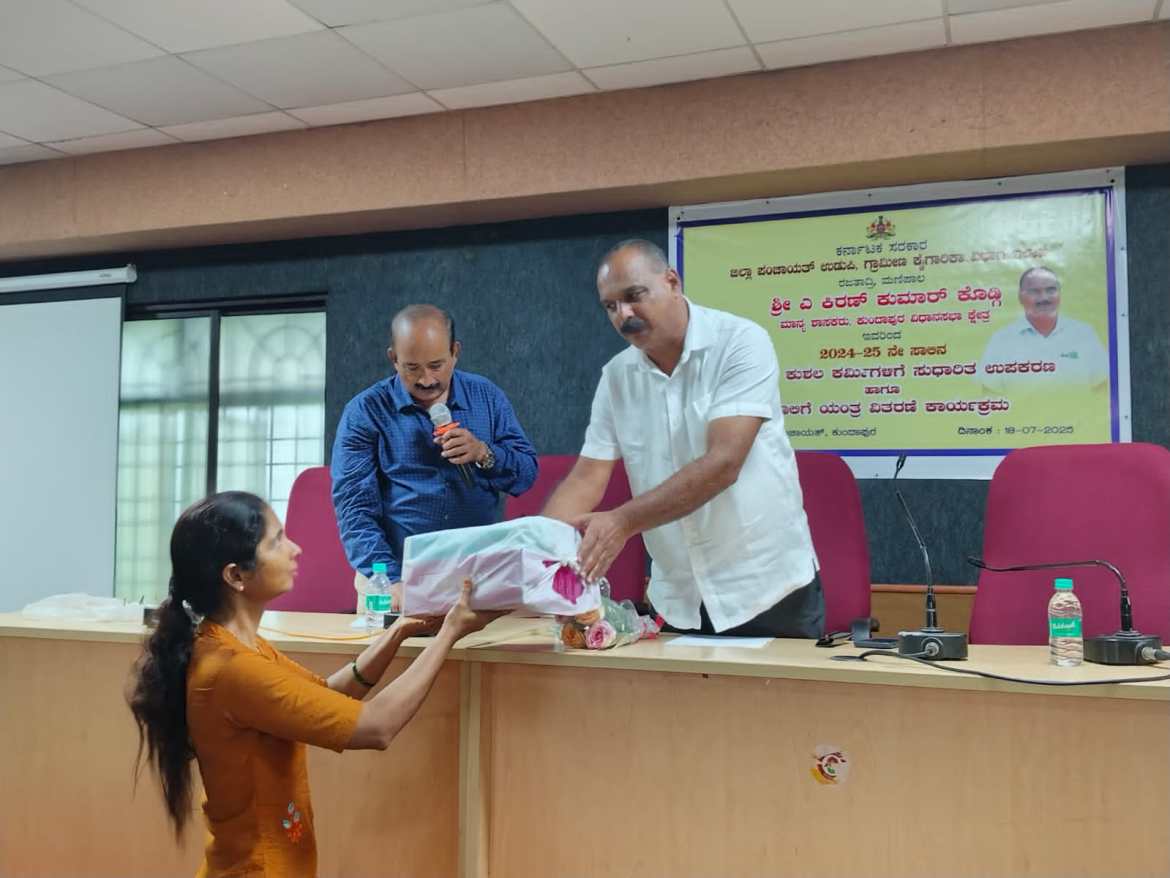 ಕುಂದಾಪುರ : ಗ್ರಾಮೀಣ ಕುಶಲಕರ್ಮಿಗಳಿಗೆ ಸುಧಾರಿತ ಉಪಕರಣ ಹಾಗೂ ಹೊಲಿಗೆ ಯಂತ್ರ ವಿತರಣಾ ಕಾರ್ಯಕ್ರಮವು ಕುಂದಾಪುರ ತಾಲೂಕು ಪಂಚಾಯಿತಿನ ಸಭಾಂಗಣದಲ್ಲಿ ನಡೆಯಿತು
