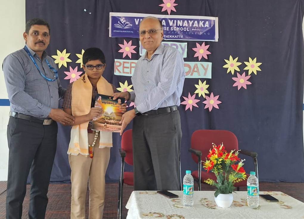 ತೆಕ್ಕಟ್ಟೆ : ಜನವರಿ 76 ನೇ ಗಣರಾಜ್ಯೋತ್ಸವದ ಪ್ರಯುಕ್ತ ವಿಶ್ವ ವಿನಾಯಕ ಆಂಗ್ಲ ಮಾದ್ಯಮ ಶಾಲೆಯಲ್ಲಿ ಧ್ವಜಾರೋಹಣ ಕಾರ್ಯಕ್ರಮ ನೆರವೇರಿಸಲಾಯಿತು. ಶಾಲಾ ಮ್ಯಾನೇಜಿಂಗ್ ಡೈರೆಕ್ಟರ್ ಶ್ರೀ ಪ್ರಭಾಕರ ಶೆಟ್ಟಿಯವರು ಧ್ವಜಾರೋಹಣ ನೆರವೇರಿಸಿ ಡಾ. ಬಿ.ಆರ್. ಅಂಬೇಡ್ಕರ್ರವರ ಭಾವಚಿತ್ರಕ್ಕೆ ಪುಷ್ಪ ನಮನಗಳನ್ನು ಸಲ್ಲಿಸಿ ಸಂವಿಧಾನದ ಮಹತ್ವವನ್ನು ವಿದ್ಯಾರ್ಥಿಗಳಿಗೆ ತಿಳಿಸಿದರು