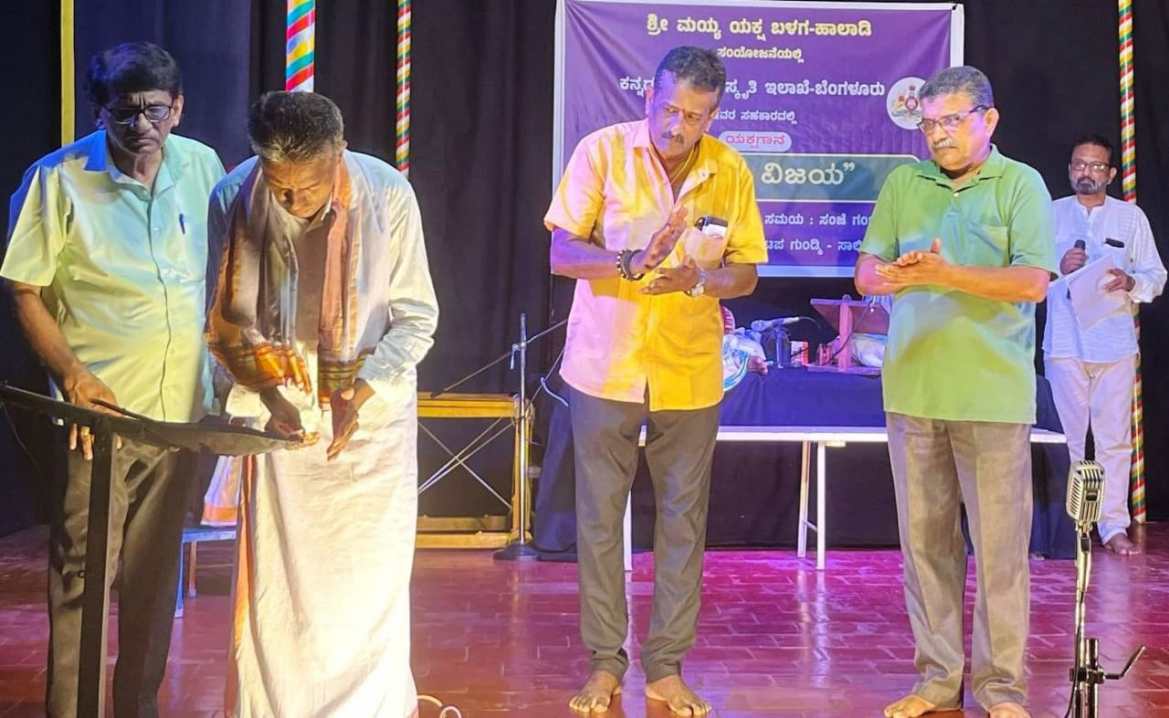 ಕೋಟ ; ದೇವತಾರಾಧನೆಯ ಮೂಲ ಉದ್ದೇಶವನಿಟ್ಟುಕೊಂಡು ಹುಟ್ಟಿದ ಕಲೆ ಯಕ್ಷಗಾನ. ಯಾವ ಪ್ರಸಂಗವಾದರೂ ಸುಸಂಸ್ಕೃತ ತತ್ವವನ್ನು ಪ್ರತಿಪಾದಿಸುವ ಕಥೆಗಳನ್ನೊಳಗೊಂಡಿರುತ್ತದೆ. ಯಕ್ಷಗಾನ. ರಾಮಾಯಣ, ಮಹಾಭಾರತ ಮತ್ತು ಭಾಗವತ ಕಥೆಗಳು ಎಂದೆಂದಿಗೂ ಸಮಾಜದ ಕ್ಷೇಮಕ್ಕೆ ಅಗತ್ಯವಾದ ವಿಚಾರವನ್ನು ಹೊಂದಿದಂತವುಗಳು. ಈ ನಿಟ್ಟಿನ ಉದ್ದೇಶವನ್ನು ಹೊಂದಿ ಮಯ್ಯ ಯಕ್ಷ ಬಳಗ ಹಾಲಾಡಿ ಹಮ್ಮಿಕೊಂಡ ಈ ಯಕ್ಷಗಾನ ಪ್ರದರ್ಶನ ಯಶಸ್ವಿಯಾಗಲೆಂದು ಹಾರೈಸುತ್ತೇನೆಂದು ಸಾಲಿಗ್ರಾಮ ದೇವಸ್ಥಾನದ ಟ್ರಸ್ಟಿ ವೇದಮೂರ್ತಿ ಗುಂಡ್ಮಿ ಚಂದ್ರಶೇಖರ ಉಪಾಧ್ಯ ಆಶೀರ್ವದಿಸಿದರು.