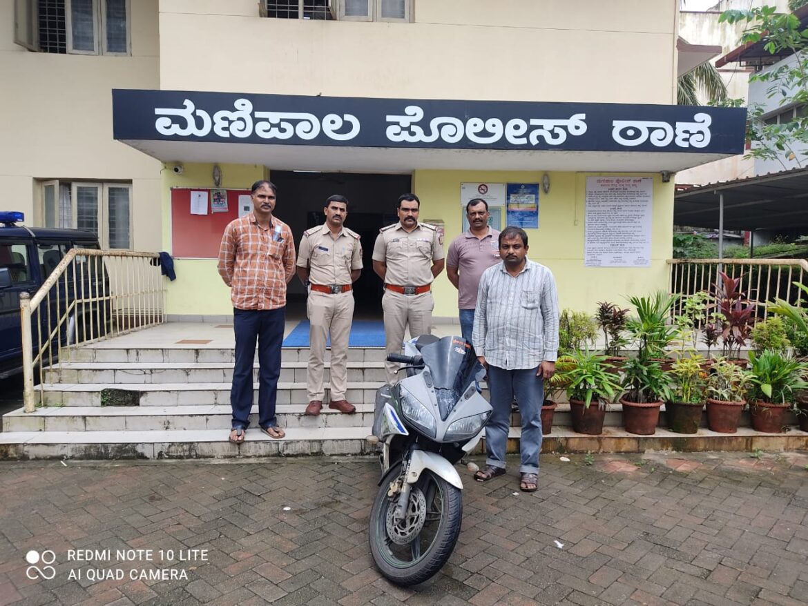 ಮಣಿಪಾಲ : ಆರು ತಿಂಗಳ ಹಿಂದೆ ಮಣಿಪಾಲ ಪೊಲೀಸ್ ಠಾಣಾ ವ್ಯಾಪ್ತಿಯಲ್ಲಿ ದಾಖಲಾಗಿದ್ದ ಬೈಕ್ ಕಳವು ಪ್ರಕರಣಕ್ಕೆ ಸಂಬಂಧಿಸಿದಂತೆ ಆರೋಪಿಯೊಬ್ಬನನ್ನು ಮಣಿಪಾಲ ಪೊಲೀಸರು ಬಂಧಿಸಿದ್ದಾರೆ.ಬ್ರಹ್ಮಾವರದ ಪುತ್ತೂರು ನಿವಾಸಿ ಪ್ರಕಾಶ್ ನಾಯಕ್ ಬಂಧಿತ ಆರೋಪಿ. ಈತನಿಂದ ಕಳವು ಮಾಡಿರುವ ಬೈಕ್ ಸ್ವಾಧೀನ ಪಡಿಸಿಕೊಂಡು ಆರೋಪಿಯನ್ನು ನ್ಯಾಯಾಲಯಕ್ಕೆ ಹಾಜರುಪಡಿಸಿದ್ದು, ನ್ಯಾಯಾಂಗ ಬಂಧನ ವಿಧಿಸಲಾಗಿದೆ ಮಣಿಪಾಲ ಪೊಲೀಸ್ ಠಾಣೆ ನಿರೀಕ್ಷಕ ದೇವರಾಜ್ ಟಿ.ವಿ., ಪೊಲೀಸ್ ಉಪ ನಿರೀಕ್ಷಕ ರಾಘವೇಂದ್ರ, ಸಿಬ್ಬಂದಿಗಳಾದ ಇಮ್ರಾನ್, ಪ್ರಸನ್ನ ಕಾರ್ಯಾಚರಣೆಯಲ್ಲಿ ಭಾಗವಹಿಸಿದ್ದರು.