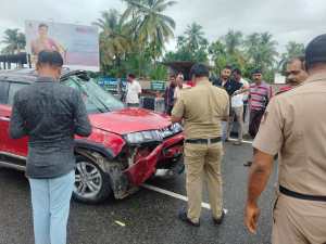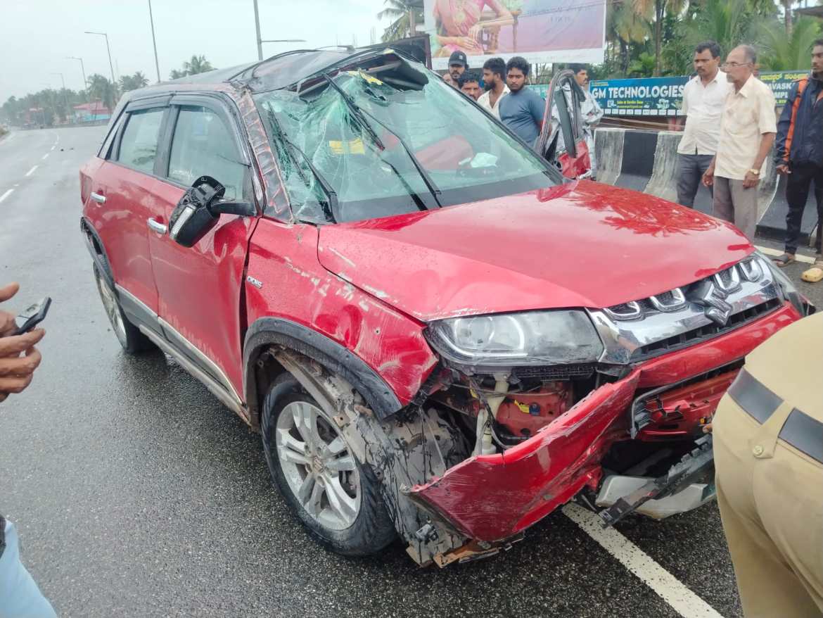 ಕುಂದಾಪುರ ಕಡೆಯಿಂದ ಭಟ್ಕಳ ಕಡೆಗೆ ಚಲಿಸುತ್ತಿದ್ದ ಬ್ರಜ್ಜಾ ಕಾರು ರಾಷ್ಟ್ರೀಯ ಹೆದ್ದಾರಿ ಓವರ್ ಬ್ರಿಜ್ ಮೇಲೆ ಚಾಲಕನ ನಿಯಂತ್ರಣ ತಪ್ಪಿ ಮಗುಚಿ ಬಿದ್ದಿದ್ದು ಅದರಲ್ಲಿರುವ ಚಾಲಕ ಹಾಗೂ ಪ್ರಯಾಣಿಕರು ಸಣ್ಣ ಪುಟ್ಟ ಗಾಯಗಳೊಂದಿಗೆ ಅಪಾಯದಿಂದ ಪಾರಾಗಿದ್ದಾರೆ