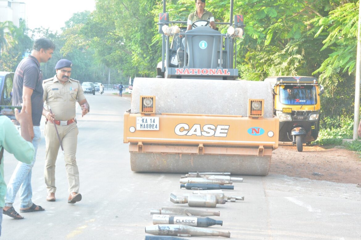 ಹೀಗೆ ವಶಪಡಿಸಿಕೊಂಡ ಸೈಲೆನ್ಸರ್ ಗಳ ಮೇಲೆ ರೋಲರ್ ನ್ನು ಹಾಯಿಸುವ ಮೂಲಕ ಅದನ್ನು ನಾಶಪಡಿಸಲಾಯಿತು ಈ ಸಂದರ್ಭದಲ್ಲಿ ಉಡುಪಿ ಡಿ ವೈ ಎಸ್ ಪಿ ದಿನಕರ್ ಮಣಿಪಾಲ್ ಪೊಲೀಸ್ ನಿರೀಕ್ಷಕರಾದ ದೇವರಾಜ್ ಟಿ ವಿ ಹಾಗೂ ಎಎಸ್ಐ ನವೀನ್ ಉಪಸ್ಥಿತರಿದರು