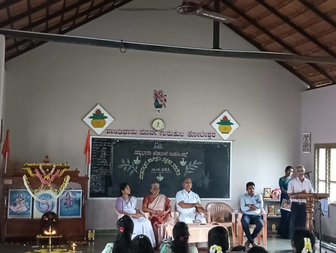 ಶಾಂತಿಧಾಮ ಪೂರ್ವ ಗುರುಕುಲ ಕೋಟೇಶ್ವರದ ಮಾತಾಜಿ ಶ್ರೀಮತಿ ಪವಿತ್ರ ಸ್ವಾಗತಿಸಿದರು. ಶ್ರೀಮತಿ ಜ್ಯೋತಿ ಮಾತಾಜಿ ವಂದಿಸಿದರು. ಜಿಲ್ಲಾ ಪ್ರಶಿಕ್ಷಣ ವರ್ಗಕ್ಕೆ ವಿದ್ಯಾಭಾರತಿ ಕರ್ನಾಟಕ ಉಡುಪಿ ಜಿಲ್ಲೆಯ ಶೈಕ್ಷಣಿಕ ಸಂಯೋಜಿತ ಸಂಸ್ಥೆಗಳಿಂದ 29 ಶಿಕ್ಷಕರು ಭಾಗವಹಿಸಿದ್ದರು . ವಿದ್ಯಾಭಾರತಿ ಕರ್ನಾಟಕ ಕ್ಷೇತ್ರ ಶಿಶುಶಿಕ್ಷಣ ಪ್ರಮುಖ್ ಶ್ರೀಮತಿ ತಾರಾ ಕೆ ಆಚಾರಿ, ಶ್ರೀಮತಿ ಅನ್ನಪೂರ್ಣ ಶಿವಮೊಗ್ಗ ಸಂಪನ್ಮೂಲ ವ್ಯಕ್ತಿಗಳಾಗಿ ತರಬೇತಿಯನ್ನು ನಡೆಸಿಕೊಟ್ಟರು . ವಿದ್ಯಾಭಾರತಿ ಕರ್ನಾಟಕ ಶಿಶು ಮಂದಿರಗಳ ಮಕ್ಕಳಿಗಾಗಿ ಮುದ್ರಣ ಮಾಡಿರುವ ಹೊಸ ಪಠ್ಯಪುಸ್ತಕಗಳಿಗೆ ಅನುಗುಣವಾಗಿ ತರಬೇತಿಯನ್ನು ನೀಡಲಾಯಿತು. ಪ್ರಶಿಕ್ಷಣ ವರ್ಗದ ಸಮಾರೋಪದಲ್ಲಿ ಶಾಂತಿಧಾಮ ಪೂರ್ವ ಗುರುಕುಲ ಕೋಟೇಶ್ವರದ ಸಂಚಾಲಕರಾದ ಶ್ರೀ ಟಿ .ಕೃಷ್ಣರಾಯ ಶಾನುಭಾಗ್ ತರಬೇತಿಯಿಂದ ಶಿಕ್ಷಕರ ವ್ಯಕ್ತಿತ್ವದ ನಿರ್ಮಾಣ ಗಟ್ಟಿಗೊಳ್ಳುತ್ತದೆ. ವಿದ್ಯಾರ್ಥಿಗಳನ್ನು ಸಂಸ್ಕೃತಿಗೆ ಅನುಗುಣವಾಗಿ ಗಟ್ಟಿಗೊಳಿಸುವುದರ ಮೂಲಕ ಸಮಾಜದ ನಿರ್ಮಾಣ ಮಾಡಬಹುದು .ಅದರೊಂದಿಗೆ ರಾಷ್ಟ್ರದ ನಿರ್ಮಾಣವನ್ನು ಮಾಡಬಹುದು . ಶಿಕ್ಷಕರು ಸದಾ ಅಧ್ಯಾಪನ ಅಧ್ಯಯನಶೀಲರಾಗಬೇಕು ಎಂದು ಸಮಾರೋಪ ಮಾತುಗಳನ್ನು ಆಡಿದರು. ವಿದ್ಯಾಭಾರತಿ ಕರ್ನಾಟಕ ಉಡುಪಿ ಜಿಲ್ಲೆಯ ಶಿಶುಶಿಕ್ಷಣ ಪ್ರಮುಖ್ ಶ್ರೀಮತಿ ಪ್ರತಿಮಾ , ಸದಸ್ಯರಾದ ಶ್ರೀ ರಾಮಪ್ರಸಾದ ಭಟ್ , ಸಂಸ್ಥೆಯ ಮುಖ್ಯೋಪಾಧ್ಯಾಯರಾದ ಶ್ರೀ ಅನಂತ ನಾಯ್ಕ ಉಪಸ್ಥಿತರಿದ್ದರು . ಶ್ರೀಮತಿ ಅಮೃತ ಮಾತಾಜಿ ನಿರೂಪಿಸಿದರು.