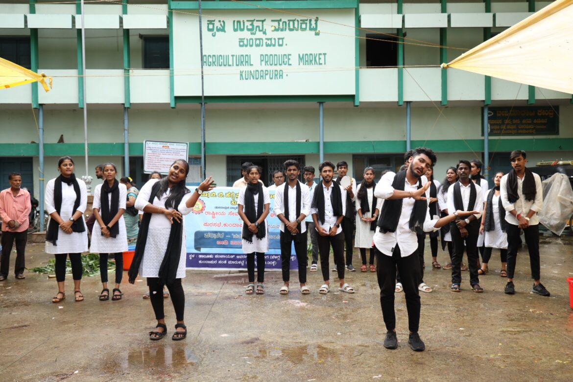 ಕುಂದಾಪುರ : ಇಲ್ಲಿನ ಡಾ| ಬಿ. ಬಿ. ಹೆಗ್ಡೆ ಪ್ರಥಮ ದರ್ಜೆ ಕಾಲೇಜಿನ ರಾಷ್ಟೀಯ ಸೇವಾ ಯೋಜನಾ ಘಟಕ ಹಾಗೂ ಪುರಸಭೆಯ ಜಂಟಿ ಆಶ್ರಯದಲ್ಲಿ ನಗರದ ತಾಲೂಕ್ ಪಂಚಾಯತ್ ಮುಂಭಾಗ ಮತ್ತು ಕುಂದಾಪುರ ಸಂತೆ ಮಾರುಕಟ್ಟೆಯಲ್ಲಿ ಪರಿಸರ – ‘ನಮಗೊಂದಿಷ್ಟು ಉಳಿಸಿ’ ಬೀದಿ ನಾಟಕ ಪ್ರದರ್ಶನ ನಡೆಯಿತು. ಸ್ವಚ್ಛತೆ ಮತ್ತು ಪರಿಸರ ಸಂರಕ್ಷಣೆ ಕುರಿತ ಈ ಬೀದಿ ನಾಟಕವನ್ನು ಅಂತಿಮ ಬಿ.ಸಿ.ಎ. ವಿದ್ಯಾರ್ಥಿ ದೇವಿಪ್ರಸಾದ್ ಶೆಟ್ಟಿ ರಚಿಸಿ, ಅಂತಿಮ ಬಿ.ಎಸ್ಸಿ. ವಿದ್ಯಾರ್ಥಿ ಲಕ್ಷ್ಮಿಕಾಂತ್ ನಿರ್ದೇಶನ ಮಾಡಿದರು.