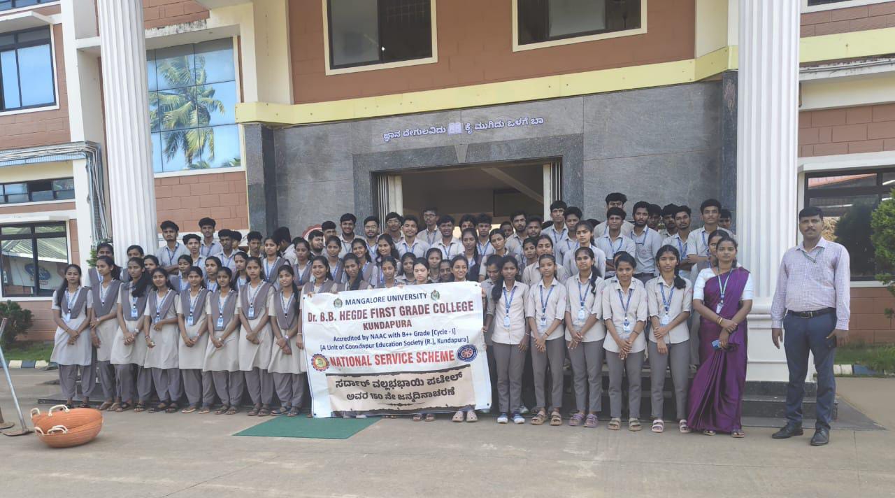 ಕುಂದಾಪುರ : ಡಾ| ಬಿ. ಬಿ. ಹೆಗ್ಡೆ ಪ್ರಥಮ ದರ್ಜೆ ಕಾಲೇಜಿನ ರಾಷ್ಟ್ರೀಯ ಸೇವಾ ಯೋಜನಾ ಘಟಕ 1 & 2 ಇವುಗಳ ಆಶ್ರಯದಲ್ಲಿ ಸರ್ದಾರ್ ವಲ್ಲಭಭಾಯಿ ಪಟೇಲ್ ಅವರ 150ನೇ ಜನ್ಮ ದಿನಾಚರಣೆಯ ಪ್ರಯುಕ್ತ ಸ್ವಚ್ಛ ಸಂಗಮ್ ಸ್ವಚ್ಛತಾ ಕಾರ್ಯಕ್ರಮ ಹಾಗೂ ‘ಸರ್ದಾರ್ ವಲ್ಲಭಭಾಯಿ ಪಟೇಲ್: ಭಾರತದ ರಾಷ್ಟ್ರಶಿಲ್ಪಿ’ ಎನ್ನುವ ವಿಷಯದ ಮೇಲೆ ಪ್ರಬಂಧ ಸ್ಪರ್ಧೆಯನ್ನು ಆಯೋಜಿಸಲಾಯಿತು ಈ ಕಾರ್ಯಕ್ರಮದಲ್ಲಿ ಕಾಲೇಜಿನ ಪ್ರಾಂಶುಪಾಲರಾದ ಪ್ರೊ. ಡಾ. ಕೆ. ಉಮೇಶ್ ಶೆಟ್ಟಿ ಮತ್ತು ಉಪ-ಪ್ರಾಂಶುಪಾಲರಾದ ಡಾ| ಚೇತನ್ ಶೆಟ್ಟಿ ಕೋವಾಡಿ ಹಾಗೂ ರಾಷ್ಟ್ರೀಯ ಸೇವಾ ಯೋಜನೆಯ ಕಾರ್ಯಕ್ರಮ ಅಧಿಕಾರಿಗಳಾದ ರಾಜೇಶ್ ಶೆಟ್ಟಿ ವಕ್ವಾಡಿ ಮತ್ತು ಪೂಜಾ ಕುಂದರ್ ಉಪಸ್ಥಿತರಿದ್ದರು.