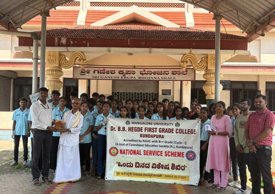 ಕುಂದಾಪುರ : ಇಲ್ಲಿನ ಡಾ. ಬಿ. ಬಿ. ಹೆಗ್ಡೆ ಪ್ರಥಮ ದರ್ಜೆ ಕಾಲೇಜಿನ ರಾಷ್ಟ್ರೀಯ ಸೇವಾ ಯೋಜನಾ ಘಟಕಗಳ (1 ಮತ್ತು 2) ಆಶ್ರಯದಲ್ಲಿ ‘ಒಂದು ದಿನದ ವಿಶೇಷ ಶಿಬಿರ’ ಆನೆಗುಡ್ಡೆ ಶ್ರೀ ವಿನಾಯಕ ದೇವಸ್ಥಾನ ಕುಂಭಾಶಿ ಇಲ್ಲಿ ನಡೆಯಿತು. ಶ್ರೀ ವಿನಾಯಕ ದೇವಸ್ಥಾನದ ಮ್ಯಾನೇಜಿಂಗ್ ಟ್ರಸ್ಟಿ ಶ್ರೀ ರಮಣ ಉಪಾಧ್ಯಾಯ ಶಿಬಿರಕ್ಕೆ ಚಾಲನೆ ನೀಡಿ ಶುಭ ಹಾರೈಸಿದರು.