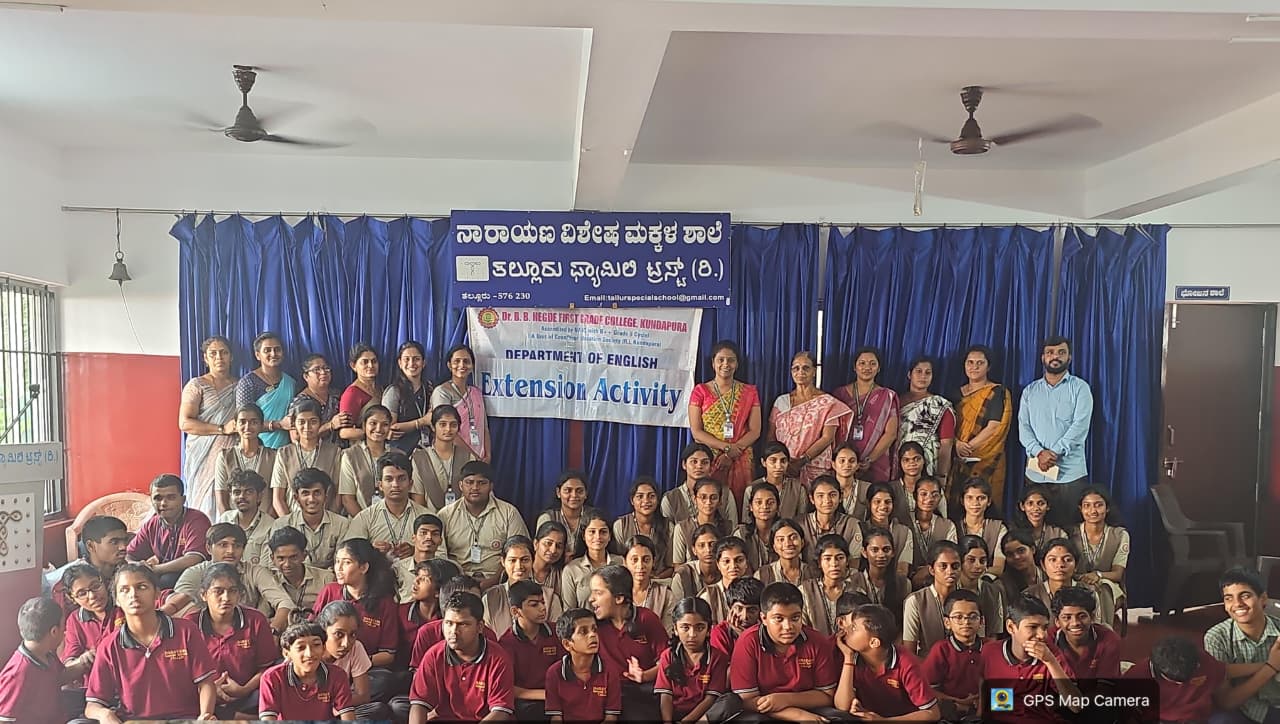 ಕುಂದಾಪುರ : ಇಲ್ಲಿನ ಡಾ| ಬಿ. ಬಿ. ಹೆಗ್ಡೆ ಪ್ರಥಮ ದರ್ಜೆ ಕಾಲೇಜಿನ ಇಂಗ್ಲೀಷ್ ವಿಭಾಗವು ವಿಸ್ತರಣಾ ಚಟುವಟಿಕೆಯ ಭಾಗವಾಗಿ ತಲ್ಲೂರಿನ ನಾರಾಯಣ ವಿಶೇಷ ಮಕ್ಕಳ ಶಾಲೆಗೆ ಭೇಟಿ ನೀಡಿ, ಶಾಲೆಯ ವಿದ್ಯಾರ್ಥಿಗಳಿಗೆ ವಿವಿಧ ಚಟುವಟಿಕೆಗಳನ್ನು ಮತ್ತು ಮನೋರಂಜನೆ ಕಾರ್ಯಕ್ರಮಗಳನ್ನು ನೀಡಿದರು. ಈ ಸಂದರ್ಭ ಬರವಣಿಗೆಯ ಪರಿಕರಗಳನ್ನು ಮತ್ತು ದಿನಸಿ ವಸ್ತುಗಳನ್ನು ನೀಡಲಾಯಿತು.