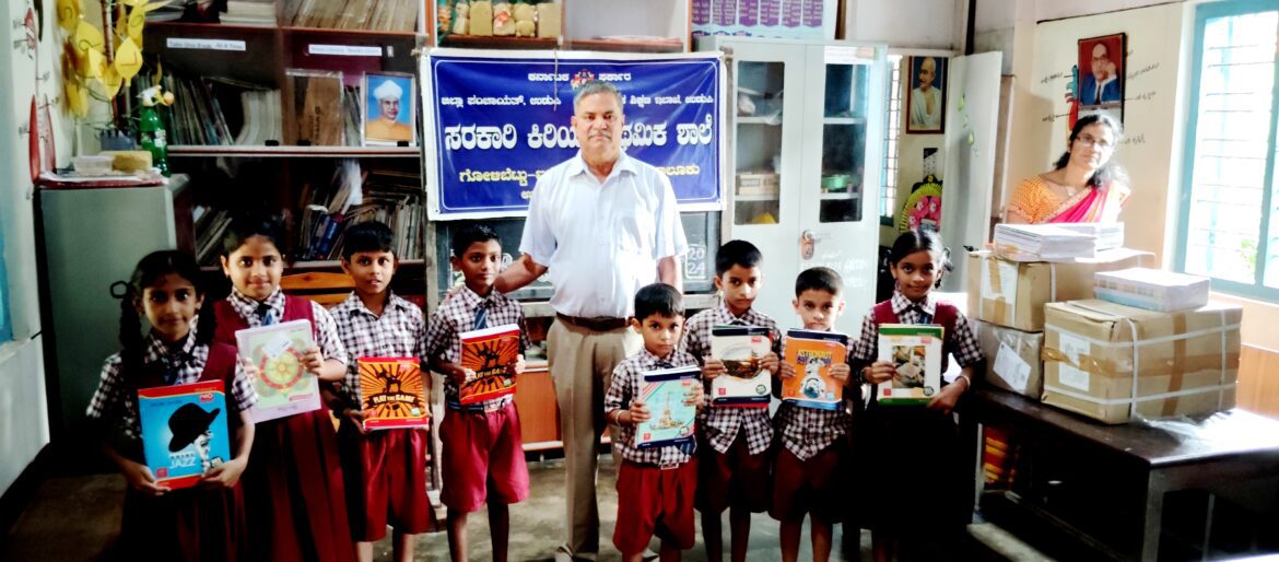 ಕೋಟ: ಸಾಸ್ತಾನ ಗೋಳಿಬೆಟ್ಟು ಐರೋಡಿಯ ಸರ್ಕಾರಿ ಕಿರಿಯ ಪ್ರಾಥಮಿಕ ಶಾಲೆಯ ಮಕ್ಕಳಿಗೆ ದಾನಿಗಳಾದ ಬೆಂಗಳೂರಿನ ಉದ್ಯಮಿ ಬಿ. ಕುಸುಮಾಕರ ಶೆಟ್ಟಿ ಉಚಿತ ನೋಟ್ ಪುಸ್ತಕಗಳನ್ನು ವಿತರಿಸಿದರು. ಕಾರ್ಯಕ್ರಮದಲ್ಲಿ ಶಾಲಾವೃದ್ಧಿ ಸಮಿತಿಯ ಅಧ್ಯಕ್ಷೆ ಪೂರ್ಣಿಮಾ ಸತೀಶ್, ಉಪಾಧ್ಯಕ್ಷರಾದ ವಿಜಯ್ ಪೂಜಾರಿ, ಸದಸ್ಯರಾದ ಮಂಜನ ಗೌಡ ಪಾಟೀಲ್ ಮತ್ತು ಕವಿತಾ ಆದರ್ಶ್ ಹಾಗೂ ಮತ್ತಿತರ ಪೋಷಕರು ಉಪಸ್ಥಿತರಿದ್ದರು. ಶಿಕ್ಷಕಿಯರಾದ ಭವಾನಿ ಮತ್ತು ಅಕ್ಷತಾ ಸಹಕರಿಸಿದರು.