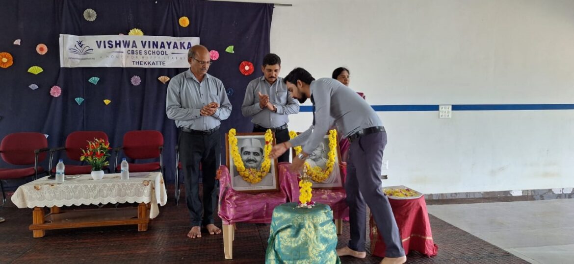 ತೆಕ್ಕಟ್ಟೆ : ಅಕ್ಟೋಬರ್ 2 ರಂದು ವಿಶ್ವ ವಿನಾಯಕ ಶಾಲೆಯಲ್ಲಿ ಗಾಂಧಿ ಜಯಂತಿಯನ್ನು ಆಚರಿಸಲಾಯಿತು.ಶಾಲಾ ಅಕಾಡೆಮಿಕ್ ಡೈರೆಕ್ಟರ್ ದಿವಾಕರ್ ಶೆಟ್ಟಿ ಹೆಚ್ ರವರು ಗಾಂಧೀಜಿ ಮತ್ತು ಲಾಲ್ ಬಹದ್ದೂರ್ ಶಾಸ್ತ್ರಿ ಅವರ ಭಾವಚಿತ್ರಗಳಿಗೆ ಪುಷ್ಪ ನಮನಗಳನ್ನು ಸಲ್ಲಿಸಿ ಗಾಂಧೀಜಿಯವರ ಸರಳ ಜೀವನ ಹಾಗೂ ತತ್ವಗಳನ್ನು ಮೈಗೂಡಿಸಿಕೊಂಡು ಜೀವನದಲ್ಲಿ ಯಶಸ್ಸು ಗಳಿಸಬೇಕೆಂದು ವಿದ್ಯಾರ್ಥಿಗಳಿಗೆ ಕರೆ ನೀಡಿದರು.ಶಾಲಾ ಪ್ರಾಂಶುಪಾಲರು ಶಿಕ್ಷಕ ವೃಂದದವರು ಹಾಗೂ ವಿದ್ಯಾರ್ಥಿಗಳು ಪುಷ್ಪ ನಮನಗಳನ್ನು ಸಲ್ಲಿಸಿದರು.