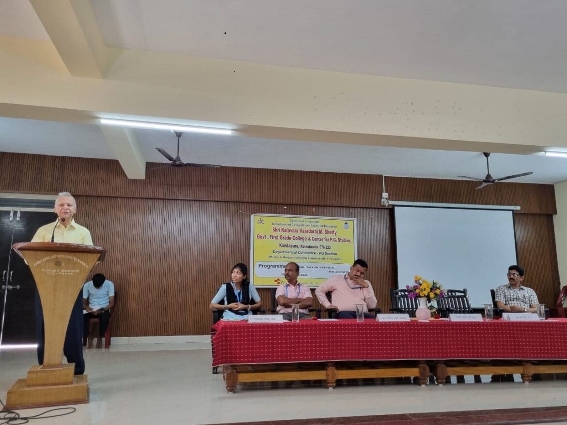 ಕುಂದಾಪುರ : “ಮನುಷ್ಯನ ಸಂಶೋಧನೆಗಳಿಗೆ ಮಿತಿ ಎಂಬುದಿಲ್ಲ, ಪ್ರತಿದಿನ ಹೊಸ ಹೊಸ ಆವಿಷ್ಕಾರಗಳನ್ನು ನಾವು ನೋಡಲು ಸಾಧ್ಯ. ಇಂತಹ ಆವಿಷ್ಕಾರಗಳನ್ನು ಮನುಷ್ಯನ ಸರ್ವತೋಮುಖ ಅಭಿವೃದ್ಧಿಗೆ ಬಳಸಿಕೊಳ್ಳಬೇಕು ಹಾಗು ಇಂತಹ ಆವಿಷ್ಕಾರಗಳಿಂದ ಮುಂದೆ ಆಗಬಹುದಾದ ತೊಂದರೆಗಳಿಗೆ ಇವಾಗಲೇ ಸೂಕ್ತ ಕಾನೂನುಗಳನ್ನು ರಚಿಸಿ ನಿಯಂತ್ರಿಸುವ ಅವಶ್ಯಕತೆ ಇದೆ. ಹಾಗಾಗಿ ಕೃತಕ ಬುದ್ಧಿ ಮತ್ತೆಯನ್ನು ಬಳಸುವಾಗ ಸೂಕ್ತ ಮುನ್ನೆಚ್ಚರಿಕೆ ಅವಶ್ಯಕ ಎಂದು ವಿ ಮೋಹನ ರಾವ್, ನಿವೃತ್ತ ಉಪ ಮುಖ್ಯ ಪ್ರಬಂಧಕರು, ಬ್ಯಾಂಕ್ ಅಪ್ ಇಂಡಿಯಾ, ಇವರು ತಿಳಿಸಿದರು. ಅವರು ಶ್ರೀ ಕಾಳಾವರ ವರದರಾಜ ಎಂ. ಶೆಟ್ಟಿ ಸರ್ಕಾರಿ ಪ್ರಥಮ ದರ್ಜೆ ಕಾಲೇಜು ಮತ್ತು ಸ್ನಾತಕೋತ್ತರ ಅಧ್ಯಯನ ಕೇಂದ್ರ, ಕುಂದಾಪುರ ಇಲ್ಲಿ ಎಂ.ಕಾಂ. ವಿದ್ಯಾರ್ಥಿಗಳಿಗೆ ಹಮ್ಮಿಕೊಳ್ಳಲಾದ, ಕೃತಕ ಬುದ್ಧಿ ಮತ್ತೆ: ವಿಶೇಷ ಉಪನ್ಯಾಸ ಕಾರ್ಯಕ್ರಮದಲ್ಲಿ ಸಂಪನ್ಮೂಲ ವ್ಯಕ್ತಿಯಾಗಿ ಮಾತನಾಡುತ್ತಿದ್ದರು.