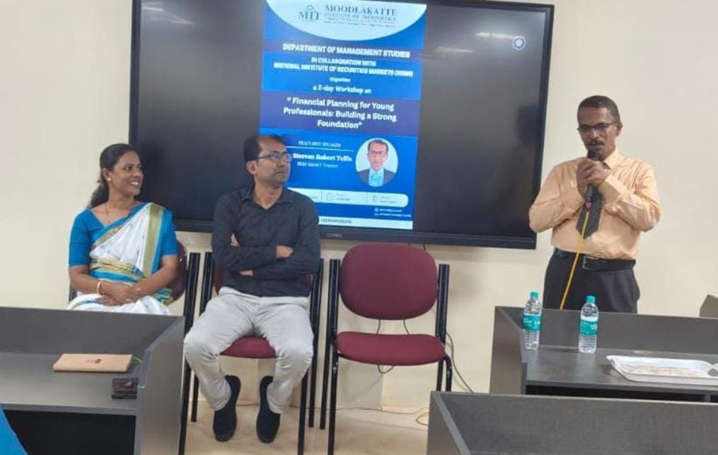 ಕುಂದಾಪುರ : ಇಲ್ಲಿನ ಎಂ.ಬಿ.ಎ ವಿಭಾಗ ವತಿಯಿಂದ ಹಾಗೂ ನ್ಯಾಷನಲ್ ಇನ್ಸ್ಟಿಟ್ಯೂಟ್ ಆಫ್ ಸೆಕ್ಯೂರಿಟೀಸ್ ಮಾರ್ಕೆಟ್ಸ್ ಸಹಯೋಗದೊಂದಿಗೆ ಫೈನಾನ್ಸಿಯಲ್ ಪ್ಲಾನಿಂಗ್ ಫಾರ್ ಯಂಗ್ ಪ್ರೊಫೆಷನಲ್ “ಬಿಲ್ಡಿಂಗ್ ಎ ಸ್ಟ್ರಾಂಗ್ ಫೌಂಡೇಶನ್” ಎಂಬ ವಿಷಯದ ಬಗ್ಗೆ ಎರಡು ದಿನದ ಕಾರ್ಯಾಗಾರವನ್ನು ಹಮ್ಮಿಕೊಳ್ಳಲಾಯಿತು. ಈ ಕಾರ್ಯಾಗಾರದ ಸಂಪನ್ಮೂಲ ವ್ಯಕ್ತಿಯಾಗಿ ಶ್ರೀ ಸ್ಟಿವನ್ ರಾಬರ್ಟ್ ಟೆಲ್ಲಿಸ್, ಸೆ.ಬಿ ಸ್ಮಾರ್ಟ್ ಟ್ರೈನರ್ ಇವರು ಆಗಮಿಸಿ ವಿವಿಧ ಹೂಡಿಕೆಗಳ ಬಗ್ಗೆ ಅರಿವು ಮೂಡಿಸಿದರು. ಮೊದಲು ವಿದ್ಯಾರ್ಥಿಗಳು ಜೀವನದಲ್ಲಿ ಗುರಿಯನ್ನು ರೂಪಿಸಿಕೊಳ್ಳಬೇಕು, ಈ ಗುರಿಯನ್ನು ಹೇಗೆ ನಿರ್ಧರಿಸಬೇಕು ಹಾಗೆ ಅನಗತ್ಯ ಖರ್ಚುಗಳನ್ನು ಕಡಿಮೆ ಮಾಡಿ ಉಳಿತಾಯ ಮಾಡಿ ಈ ಉಳಿತಾಯವನ್ನು ಮ್ಯೂಚುವಲ್ ಫಂಡ್ ಗಳಲ್ಲಿ ಹೂಡಿಕೆ ಮಾಡಿ ಹೆಚ್ಚಿನ ಲಾಭ ಗಳಿಕೆಯ ವಿವಿಧ ಸ್ತರಗಳನ್ನು ತಿಳಿಸಿದರು. ಮ್ಯೂಚುವಲ್ ಫಂಡ್, ಇಕ್ವಿಟಿ, ಡಿರಾವೇಟಿವ್ ಹಾಗೂ ಕಮೋಡಿಟಿ ಮಾರುಕಟ್ಟೆಗಳ ಬಗ್ಗೆ ತಿಳಿಸಿದರು. ಇದರ ಜೊತೆಗೆ ರಿಯಲ್ ಟ್ರೇಡಿಂಗ್ ಮಾಡಿಸುವುದರೊಂದಿಗೆ ವಿದ್ಯಾರ್ಥಿಗಳಿಗೆ ಹೂಡಿಕೆಯ ಬಗ್ಗೆ ಆಸಕ್ತಿ ಮೂಡಿಸಿದರು. ಈ ಕಾರ್ಯಗಾರದಲ್ಲಿ ಎಂ ಐ ಟಿ ಕೆ ಪ್ರಾಂಶುಪಾಲರಾದ ಡಾ. ರಾಮಕೃಷ್ಣ ಹೆಗಡೆ, ಎಂಬಿಎ ವಿಭಾಗದ ಮುಖ್ಯಸ್ಥೆ ಡಾ. ಸುಚಿತ್ರ ಪೂಜಾರಿ, ಇತರ ಉಪನ್ಯಾಸಕರು ಮತ್ತು ಎಂ ಬಿ ಎ ವಿದ್ಯಾರ್ಥಿಗಳು ಉಪಸ್ಥಿತರಿದ್ದರು.
